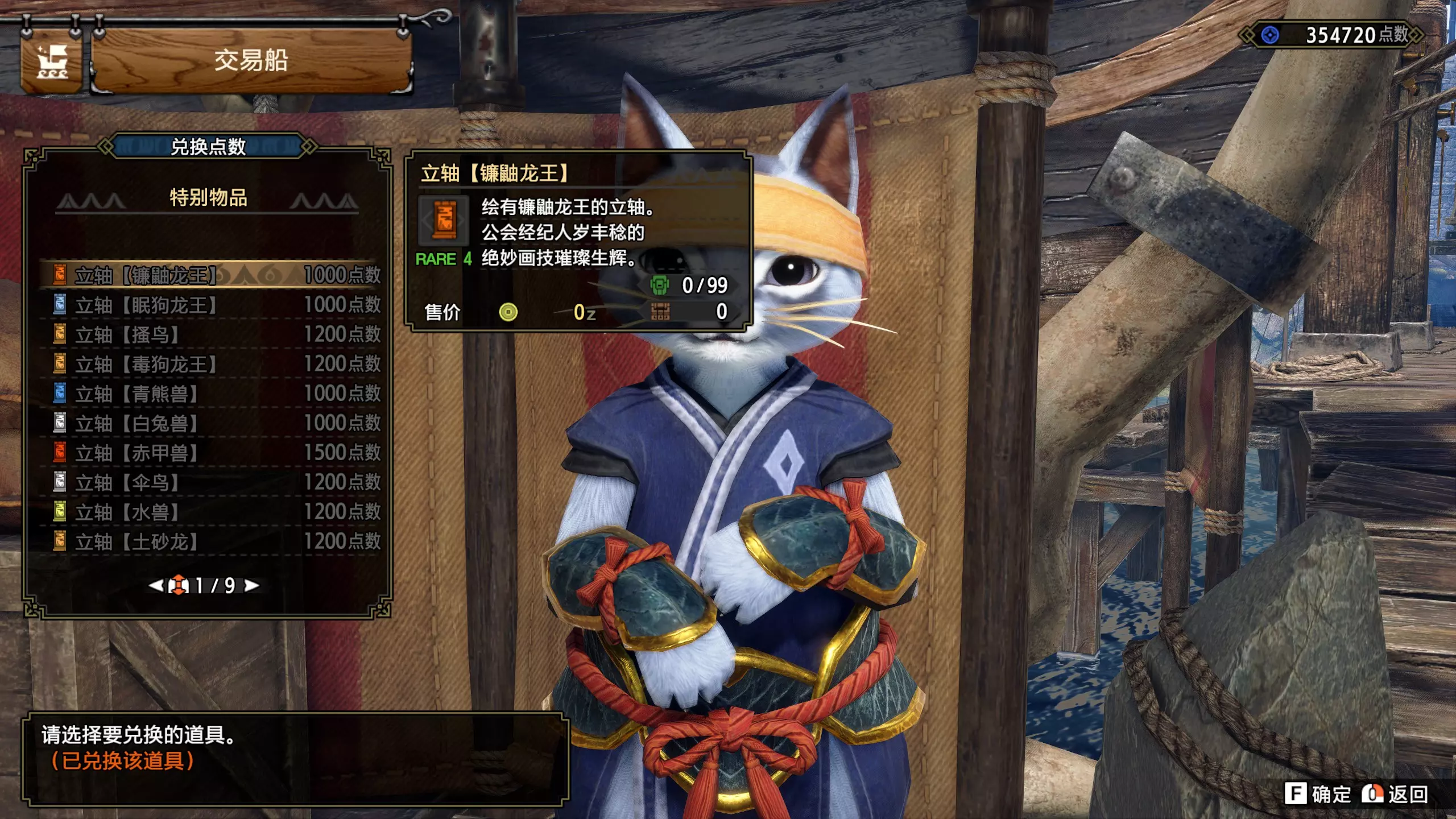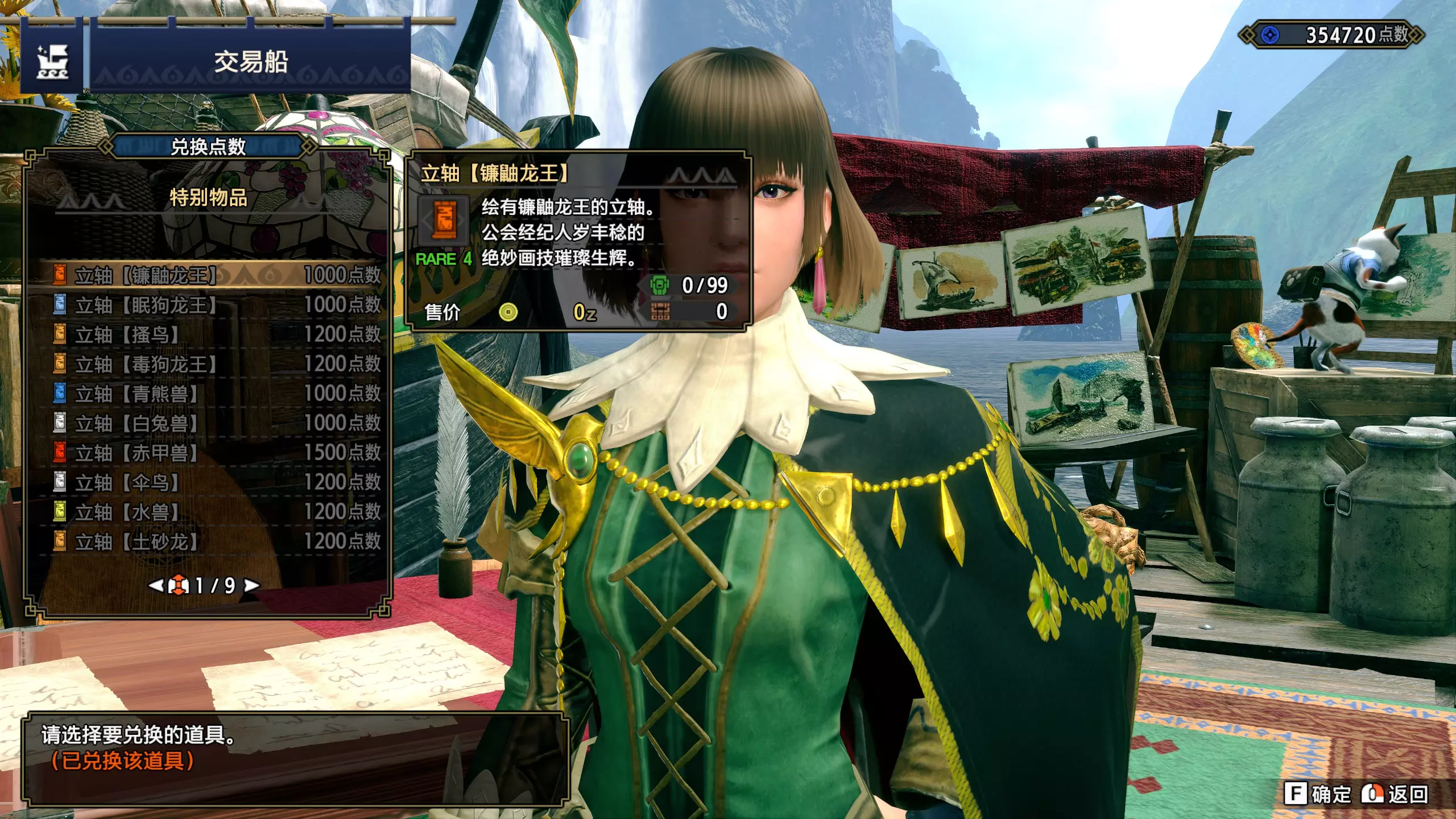 立轴满足对应获取条件后,前往随从广场分部,依次选择【交易船】、【兑换点数】、【特别物品】、【兑换物品】。