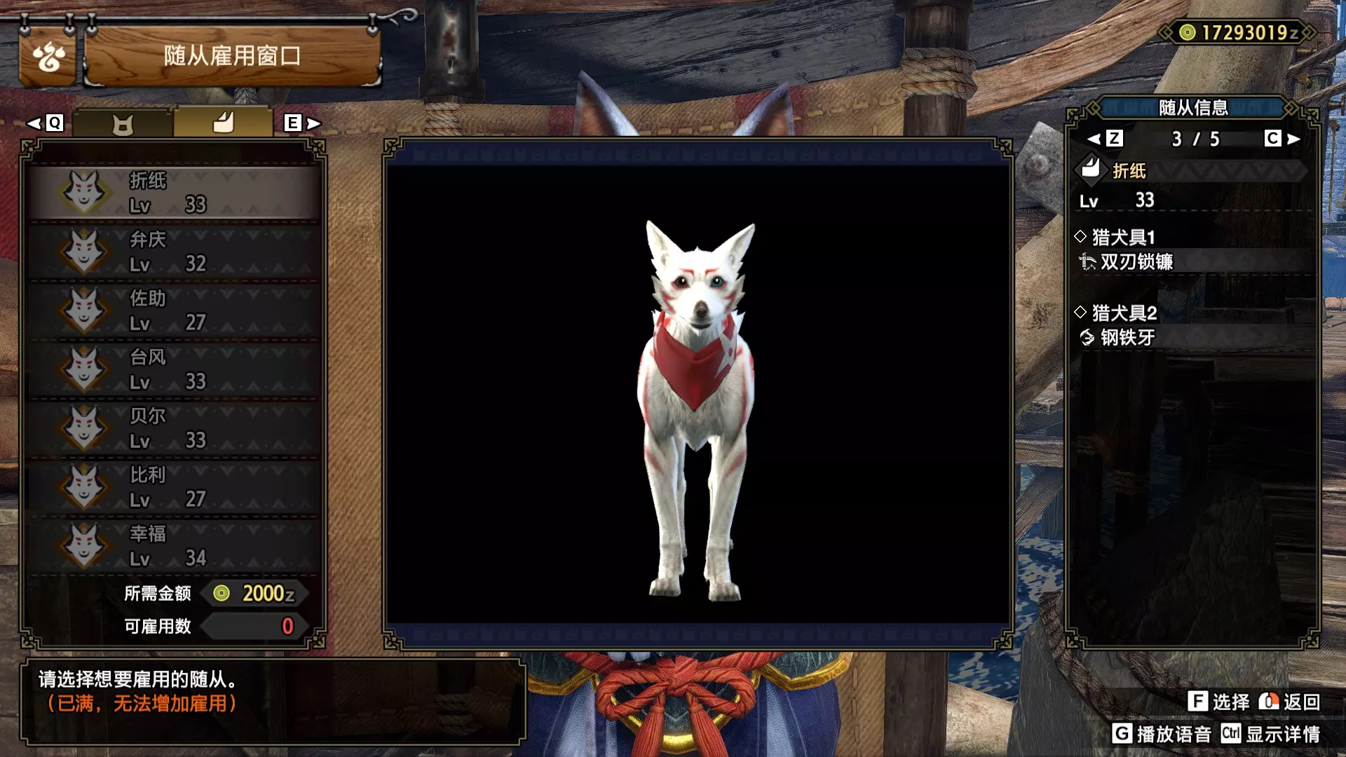 随从广场随从雇佣窗口刀脊、艾露猫首领冬风