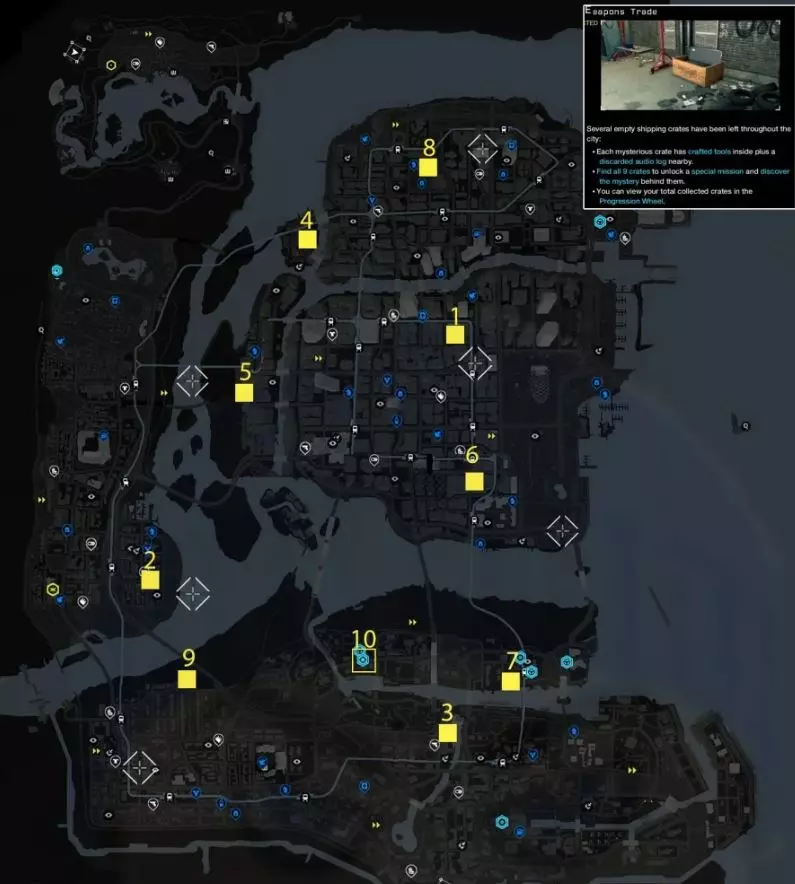 特种行动哥布林。哥布林是一把3发点射突击步枪,配备30发弹匣。它精度极高,非常准确,当然,还带有消音器。如果1911手枪超出目标射程,它就是另一款完美的沉默杀手。 但要获得这把步枪,你需要扫描所有9个武器交易箱。幸运的是,这并不太难。城市周围有9个上锁的车库,你只需找到它们。如果你解锁了该区域的CtOS塔,它们就会出现在地图上。