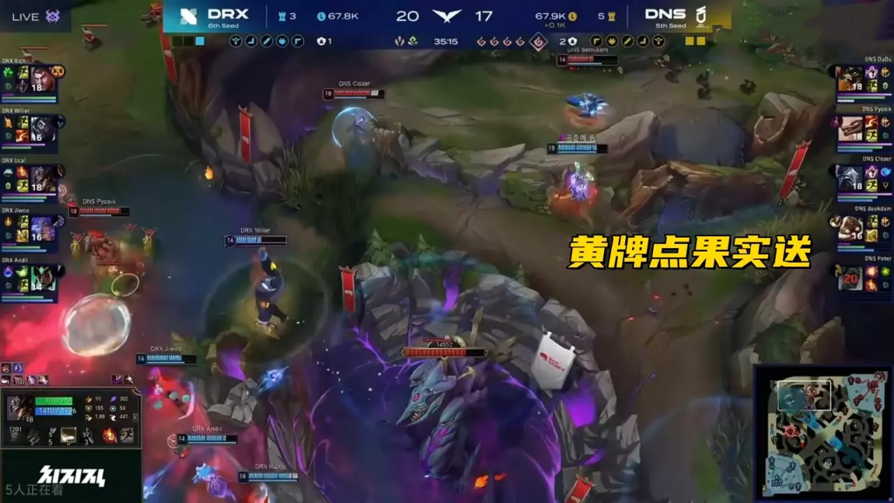 因为中单没有传送,带线期没法第一时间赶到现场,DRX也不敢主动开团,你拉我扯之下,DNS再次带着1W多的经济差拿下赛点,第三把是最有意思的,堪称LCK最“真”的比赛,12分钟DNS打出5:1的人头比,经济也领先1.3K,正常打的话,这把绝对是能拿下的,但选手的思想出问题了。