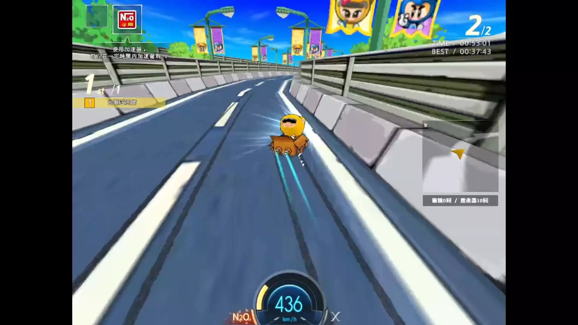 这是《跑跑卡丁车》的游戏内容,展示了使用雷霆SR在城镇高速公路赛道跑出1分48秒93的成绩,提到当年阿空用同款跑法没能跑进48秒,后期跑法能提升赛道成绩。