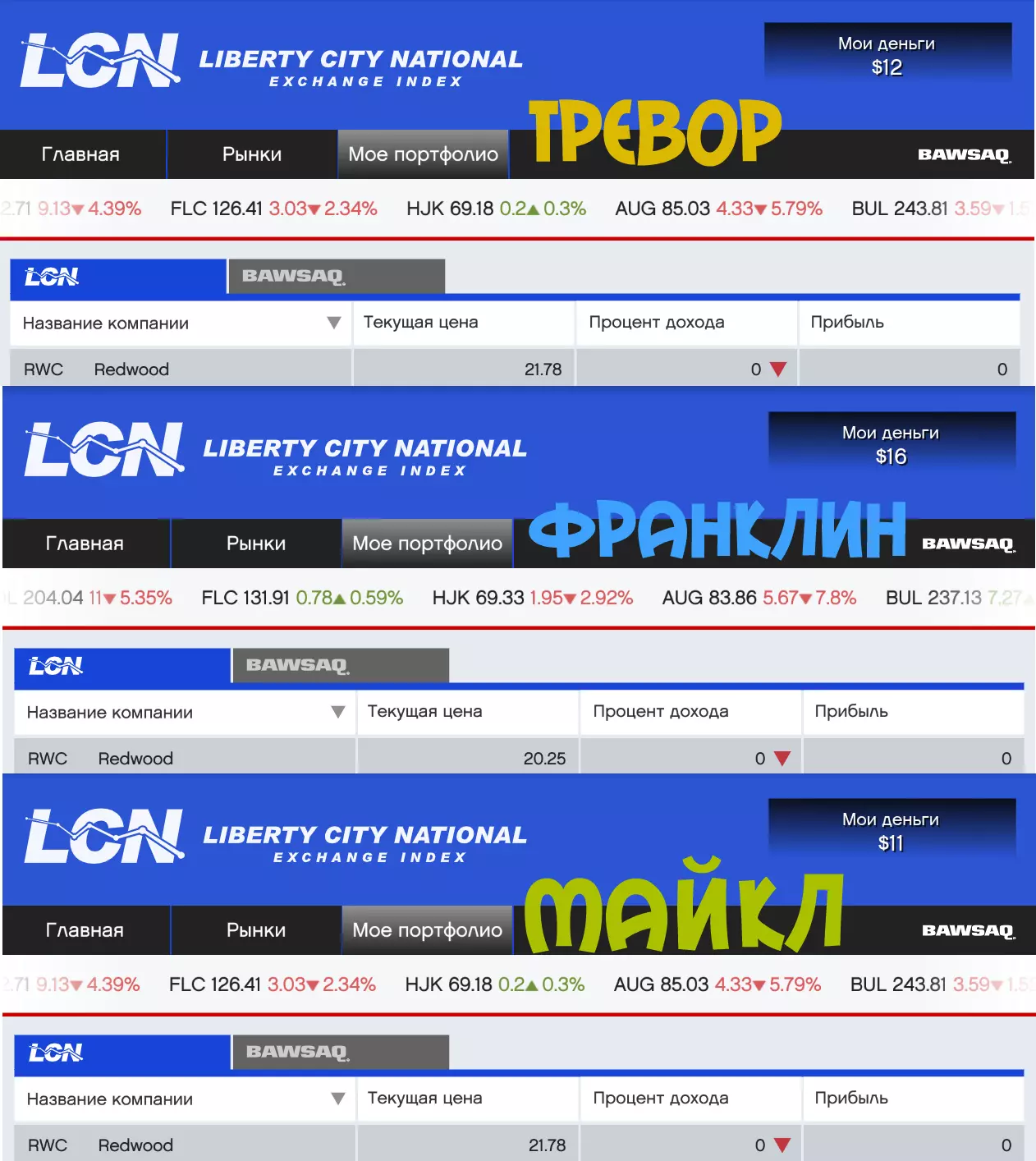 在开始莱斯特的“4个目标”任务前,你需要让所有3名角色将所有资金都投入到【Debonaire】(DEB)股票中。完成后即可开始任务。任务结束后,莱斯特会给你打电话,之后你操控任意一名角色回家睡觉即可。 重要的是不要操之过急,因为股票可能会下跌。预计利润率约为45%-70%,具体数值因人而异。如果对当前利润率不满意,可以退出游戏后重新进入,此时股票价格会发生变化,但需要重新完成莱斯特的任务——4个目标。 一旦DEB的股票获得理想利润,就卖出这些股票,并用所有资金为所有角色购买红木[RWC]的股票。之后只需等待RWC的股票价格恢复正常即可。理想利润率为30%-60%。