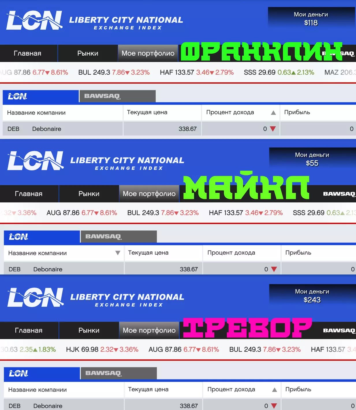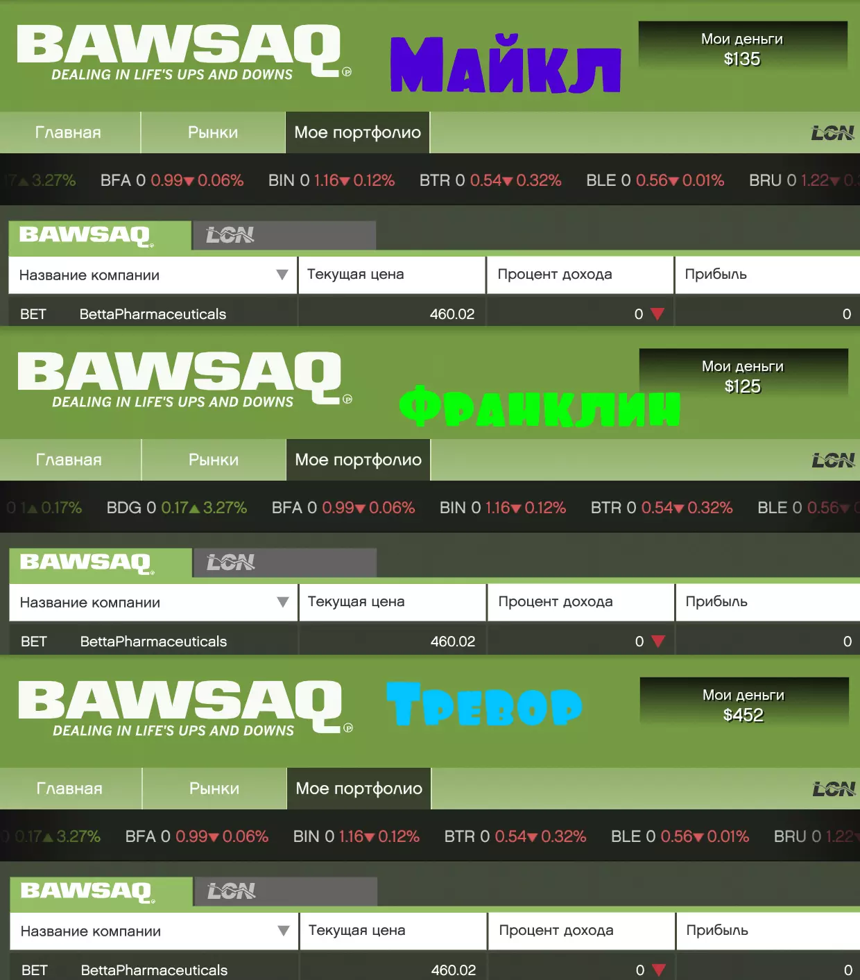 莱斯特 - 酒店谋杀案【交易所】 开始任务前,你需要进入BAWSAQ网站。 该网站位于【金钱与服务】栏目中。 然后在那里找到贝塔制药公司【BET】,并倾尽所有资金买入BET的股票。 需要为所有3名角色都执行此操作。 完成任务后,需要等待一段时间,直到你的收益达到所有投资额的49.99%。实时技巧 为了让时间过得更快,你可以回到自己家,躺下睡觉并重复此操作多次,直到【收益】板块达到49.99%或最接近这个数值。如果你长时间滥用这个方法,股票价格会下跌,所以至少每两次操作后记得查看一下。
