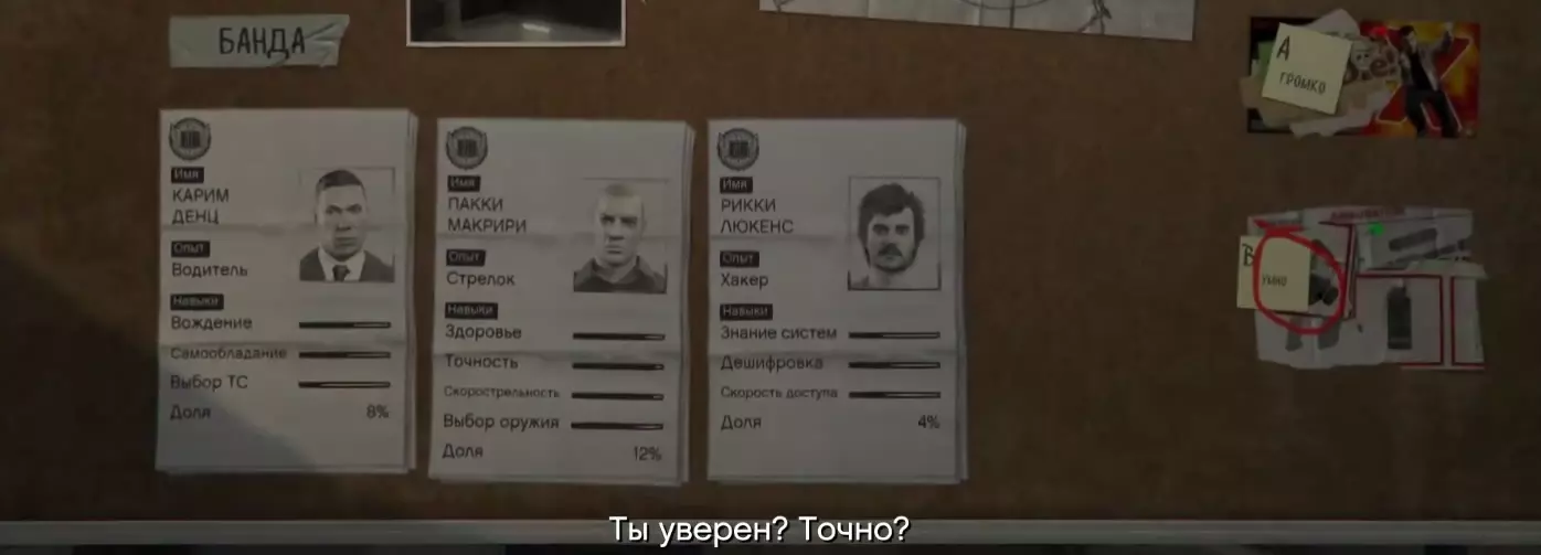 抢劫团队组成: 里基·吕肯斯 - 黑客【4%】 诺姆·理查兹 - 枪手【7%】 塔莉安娜·马丁内斯 - 司机【5%】