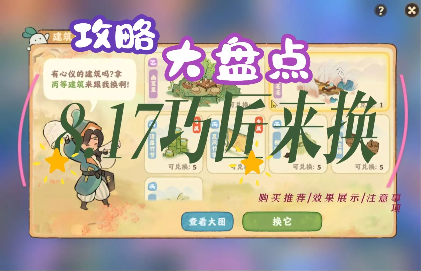 【桃源深处有人家】2024.8.17巧匠互换又来了,记得上线兑换哦 视频包含2个部分 兑换建议和建筑物效果展示,还有视频在提到的兑换避坑点。相信对大家能有帮助。