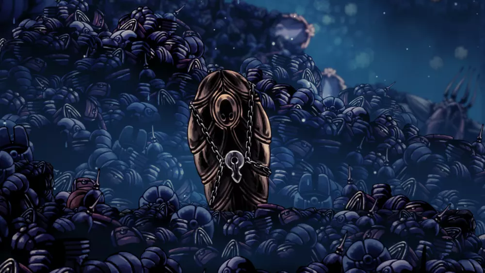 奖励区域:神居(Godhome) 该DLC区域神居需通过购买DLC Godmaster解锁。 在皇家水道中,该DLC会新增一个名为【垃圾坑(Junk Pit)】的房间(详见皇家水道)。在那里可以找到一个需要普通钥匙才能打开的茧。