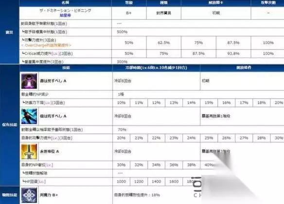 技能 三个技能满级后都是6CD。 技能组很有趣,偏向高难的定位,有降防加攻,幅度还很大,同时还有自充和解弱,控场续航一应俱全,CD时间还不长,这也是为什么秦始皇攻击低的原因了,如果白值攻击再高点的话怕是这一路平砍无人能挡了。 配卡 两红(3HITS)两蓝(4HITS)一绿(5HITS)EX(4HITS),NP获取率0.47 虽然HITS数不错,但是这NP获取率........只能说很一般。
