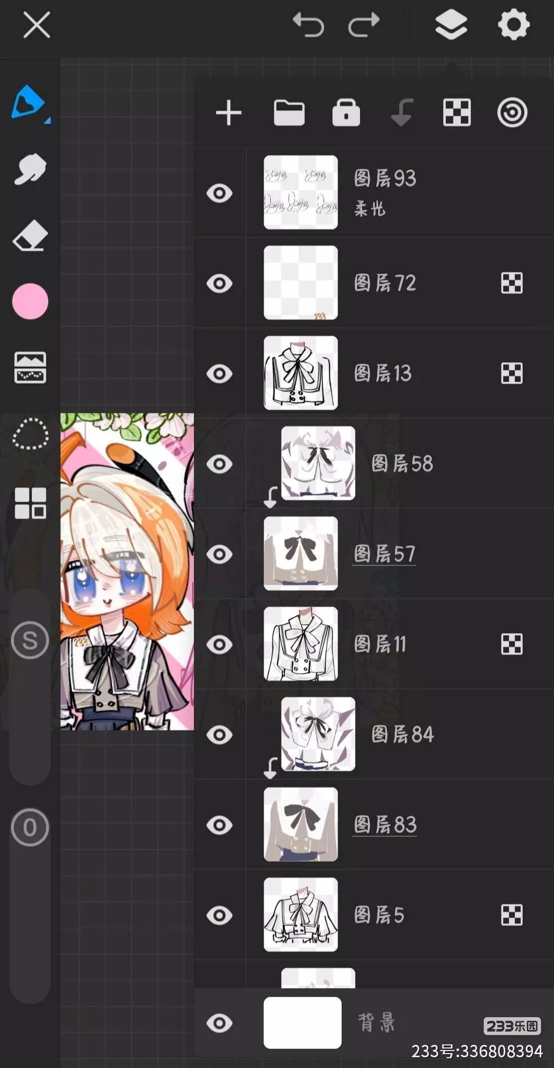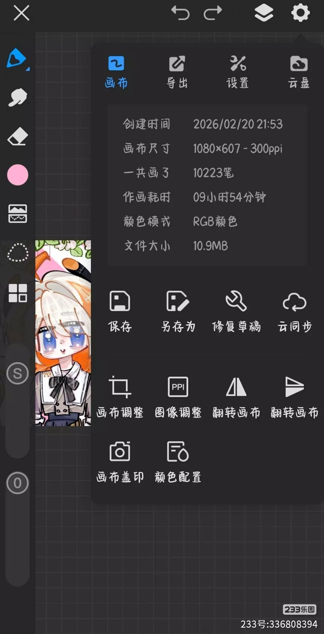 创作者发布了谢绝当鹊桥与233乐园的梦幻联动指绘作品,图中包含谢绝当鹊桥的角色与233娘,还展示了绘画的图层等创作细节,同时表示下期将创作王者荣耀×233乐园的联动内容,欢迎网友投稿。