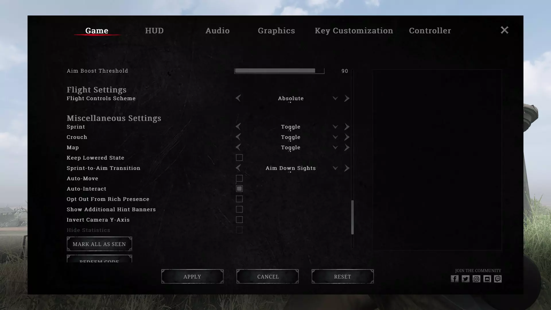 游戏分类下的另一批设置 冲刺切换 这是我玩过的第一个需要这样设置的游戏,因为我玩得太多了,按住“奔跑”键导致小拇指抽筋。 地图按住 截图里的设置是错的。我把地图设置为按住模式。 按住互动 让你在物体进入范围后立即与之互动。 这在开门或开闸、试图在不被射击的情况下打开窗户,或者使用无畏(游戏内的一种特质,能让你在空中拆除扔向你的手榴弹——并没有听起来那么强力)拆除手榴弹时很有用。 其他所有设置都关闭了,原因嘛,懂的都懂。