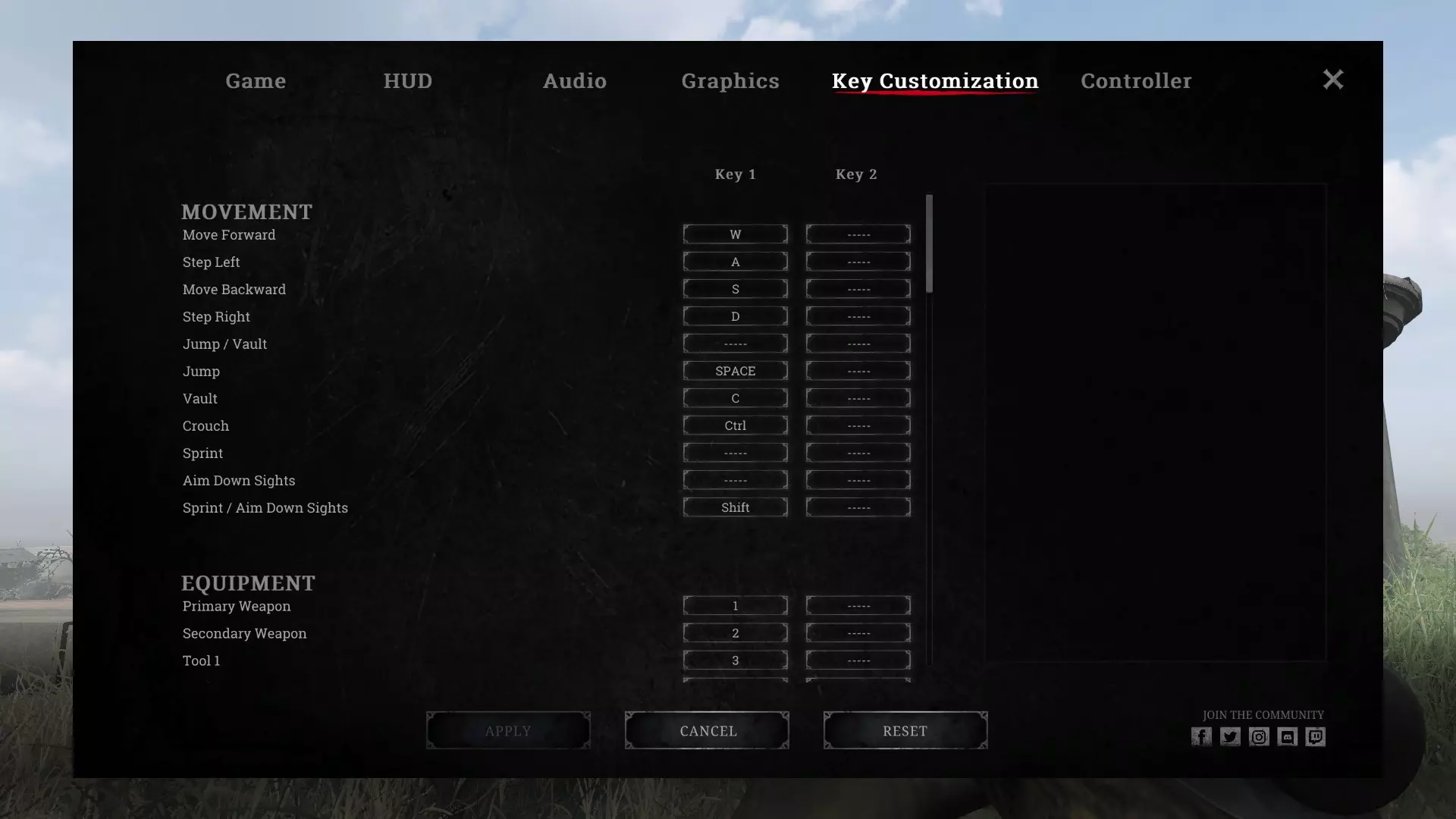 按键绑定 我将【跳跃】和【翻越物体】设置为分开的按键。这意味着当你在窗户前跳跃以避免被爆头,同时窥视窗口时,你不会“翻越”过去,从而避免暴露自己或从二楼窗户坠落致死。 我还使用以下按键: Q=暗视(我没有快速切换武器,就像普通人一样使用1234键) F=近战攻击——这要怪《黑光:惩罚》。 E=互动。