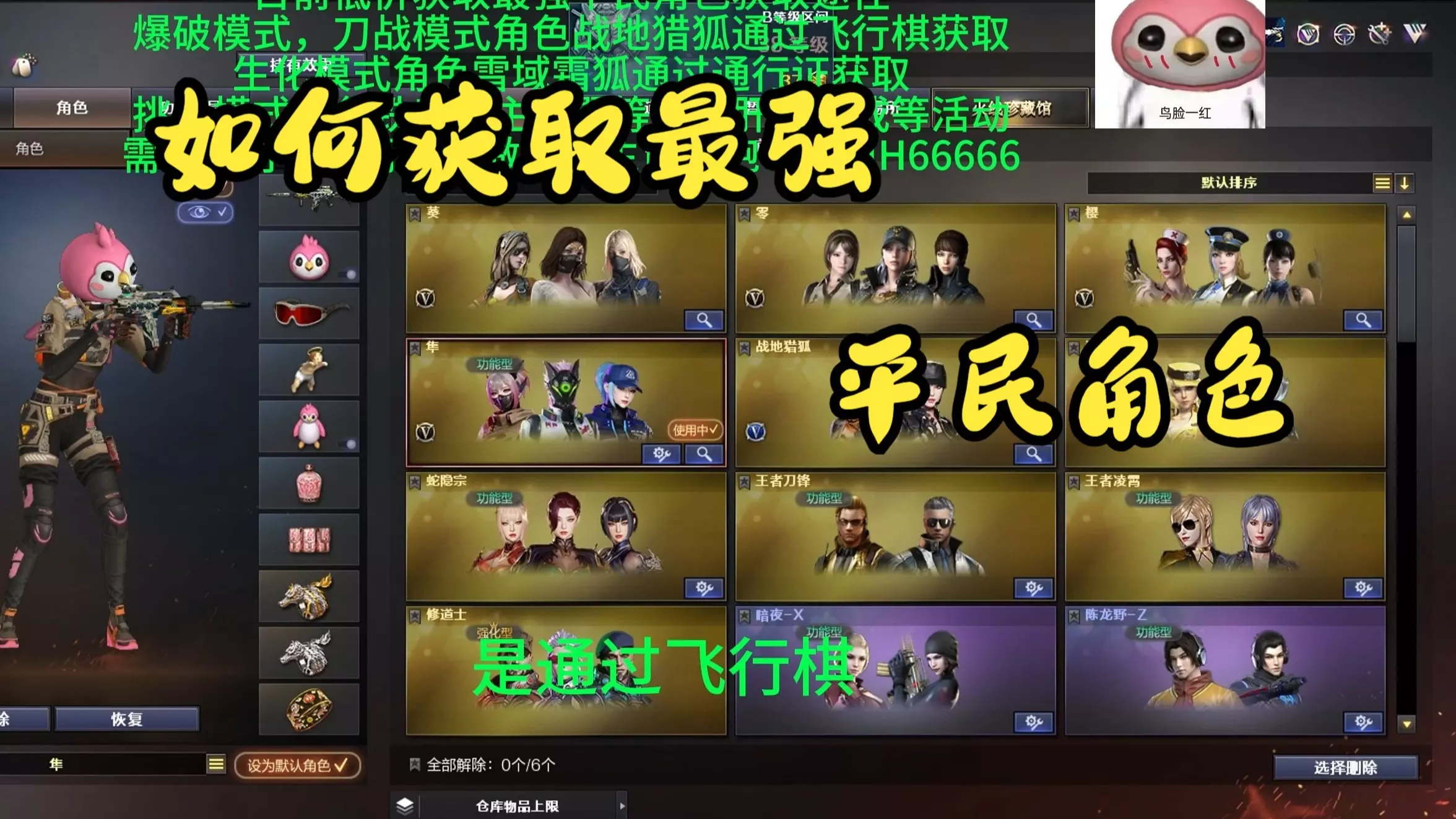 宝宝们好~ 目前低价获取最强平民角色获取途径~ 爆破模式,刀战模式角色战地猎狐通过飞行棋获取~ 生化模式角色雪域霜狐通过通行证获取~ 挑战模式角色铁扇公主,翼等…