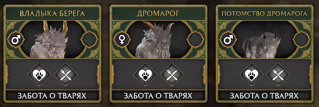托普勒罗伊克(地图上的巢穴或水域附近): 33) 狂暴 34) 毛茸茸 ??) 【石甲】 其他: 35) 地狱(可在巢穴中找到,地图最上方) 36) 黑暗侍从(可在地图上的巢穴中找到) 37) 侍从(仅与路过的偷猎者一同出现,在禁林寻找(侍从不是“黑暗”的!)生物的天性 接下来是成就【Такова природа тварей】: 要解锁该成就,需要孵化除凤凰外的所有生物(凤凰是独一无二的)。基于此,以下是需要调查的列表: 生物栖息地: 1) 炮兽 2) 月灵幼兽 3) 飞扑兽 4) 嗅探兽 5) 鹰头马身有翼兽 6) 迪里科尔 7) 闪电鼠 8) 大紫蟾蜍 9) 黏糊兽 10) 菲斯特拉尔 问题生物: 11) 独角兽(仅在地图上的禁林找到一个巢穴,通过定期在那里捕捉,直到找到雌雄两性) 12) 德罗马兽 - 和独角兽一样存在问题。首先需要在剧情上取得较大进展,直到占领“海岸领主”,之后在其栖息地会出现驰龙的栖息地,它们会在那里刷新。操作方法与独角兽相同。飞往地图最底部,定期捕捉驰龙,直到找到不同性别的个体,然后进行繁殖。