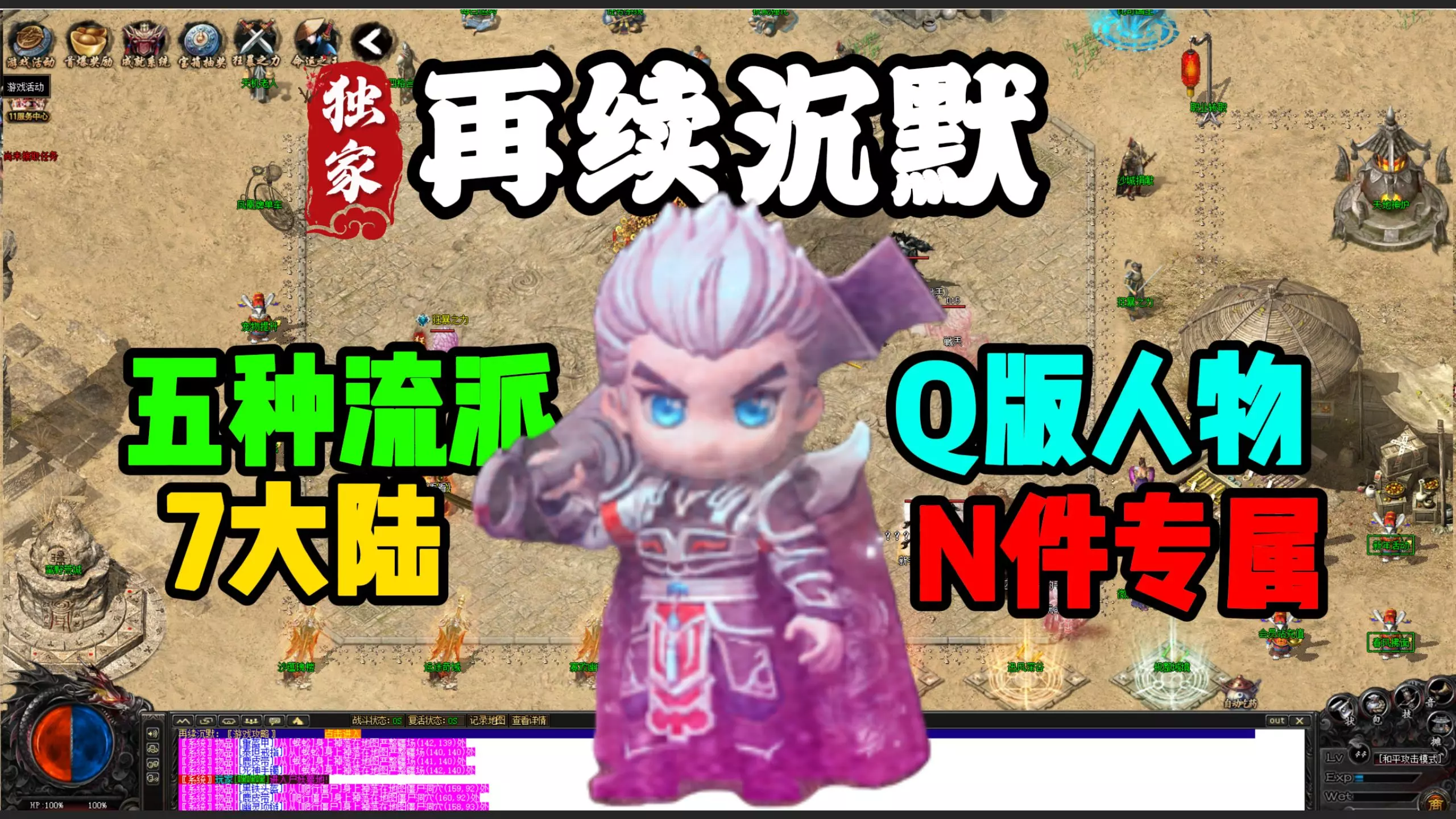 这是《三国 骷髅鬼服第一期》的传奇类游戏内容展示,呈现了游戏内的角色养成、装备系统、轮回转生玩法,还有限时经验道具、专属装备,以及超级大狂暴等活动玩法,展示了骷髅鬼服的游戏内容与特色。