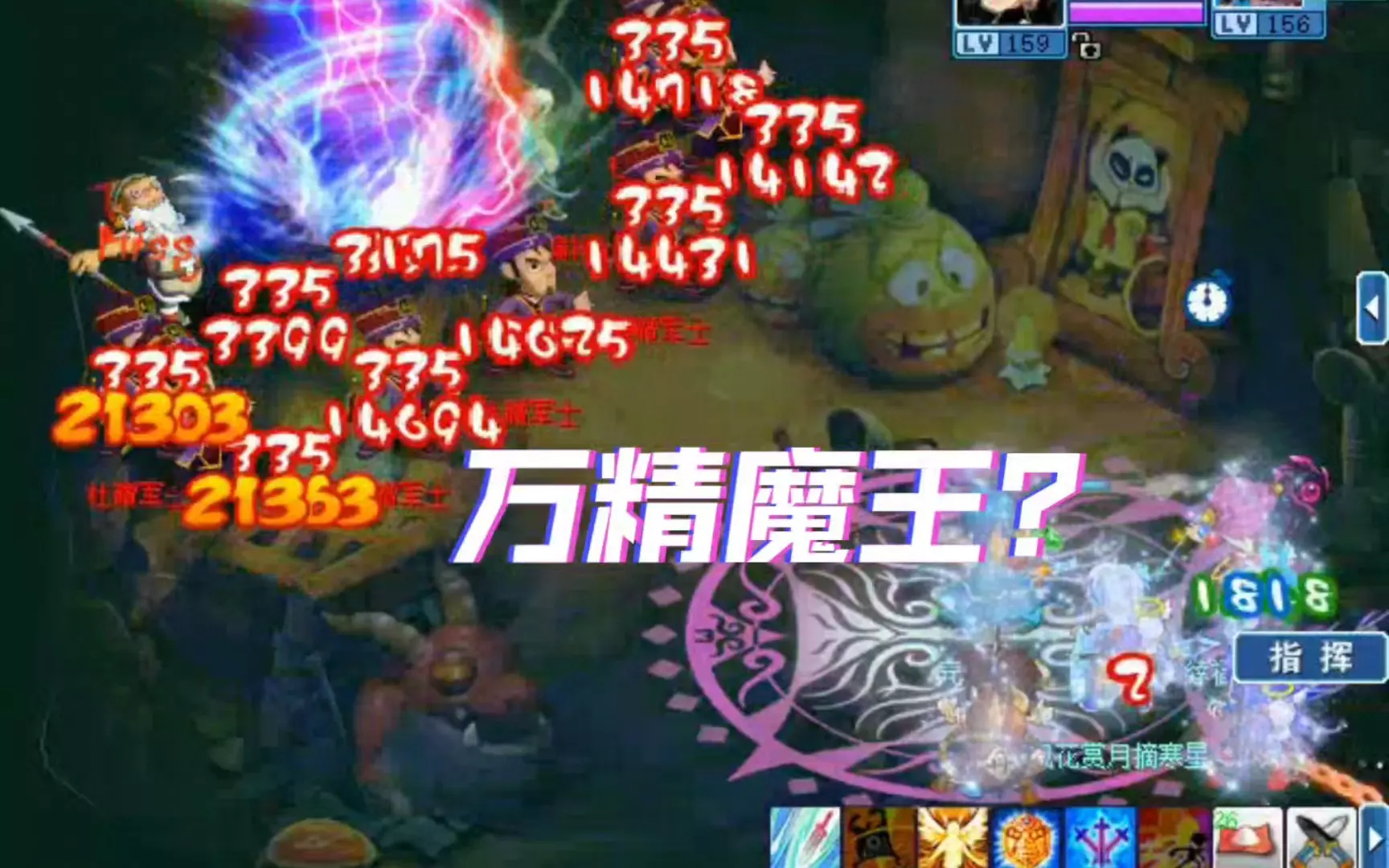 这是《新水浒Q传》的游戏集锦,展示了万精魔王和万精墨者的伤害对比:灵犀之心状态下魔王伤害约2.7w;墨者在灵犀之心状态伤害1.8w-2.6w,灵犀+归心状态伤害2.8w-4w。