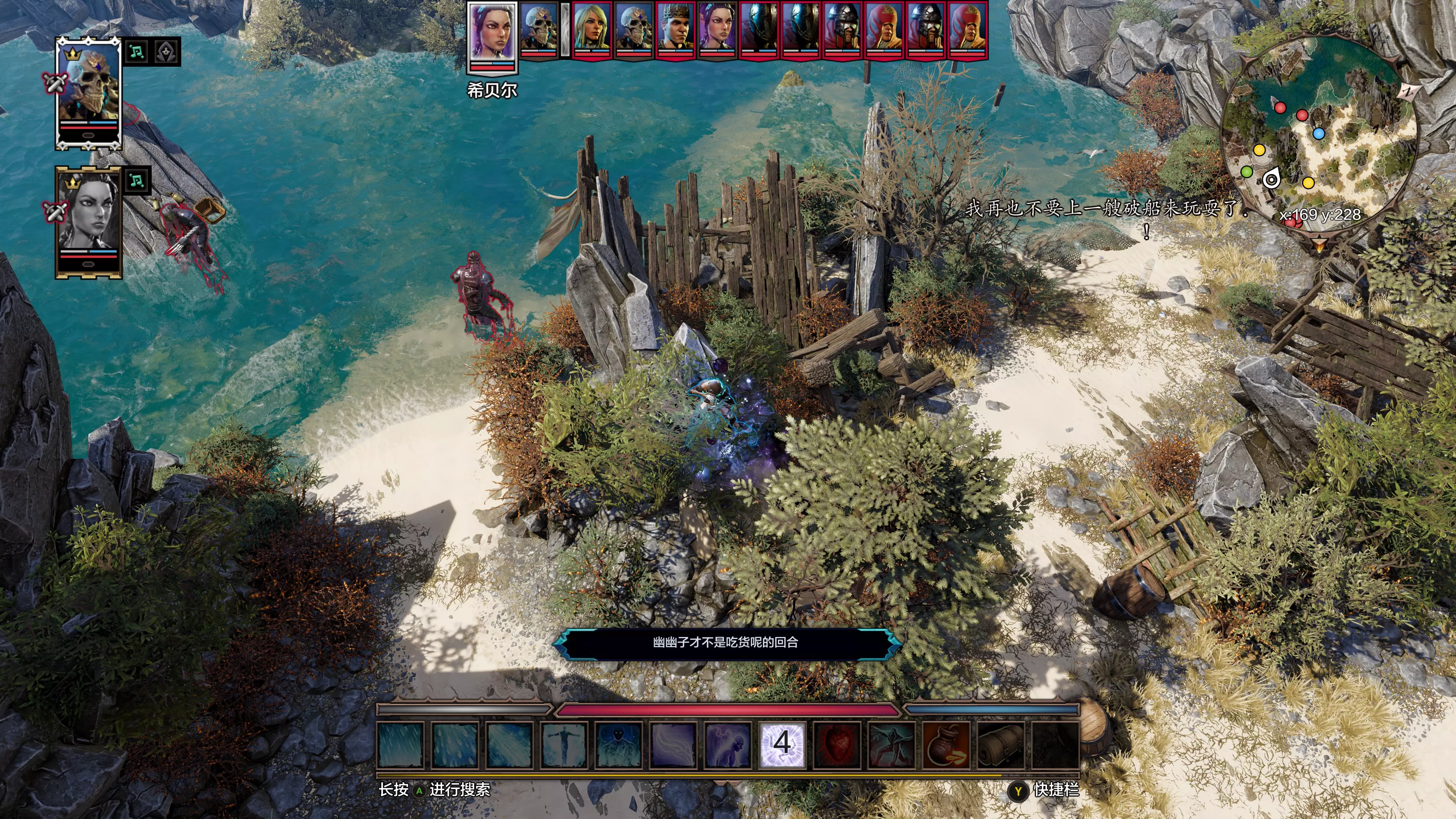 4. 达莉丝在礁石上因不会游泳而无法动弹,只能被两人轮流进行轻微攻击。