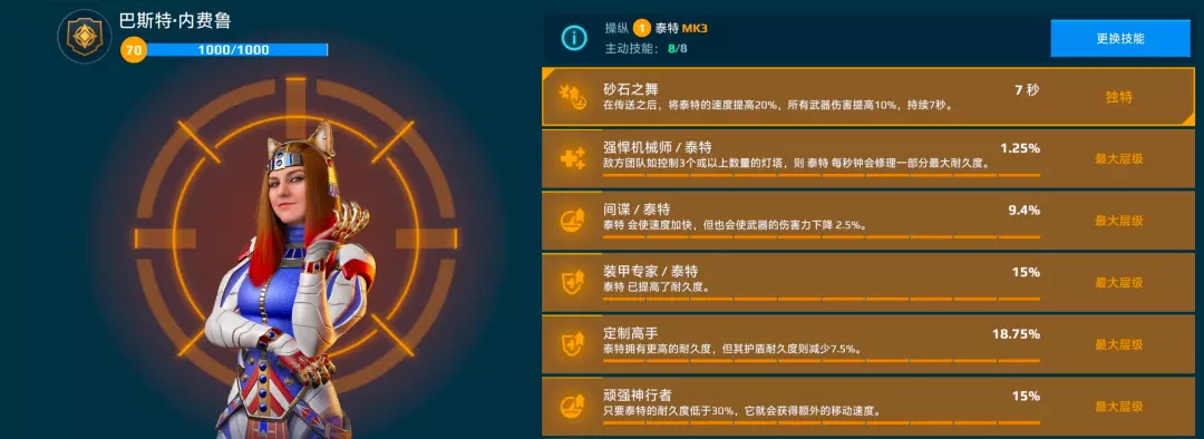 泰特本身机甲性能已经足够出色,对于机师、无人机以及武器没有过分的依赖,但合理的配置依然能很好的提升其战斗能力。机师方面,首选泰特的专属机师“巴斯特·内费鲁”,其可以提供额外的移速以及武器伤害提升。