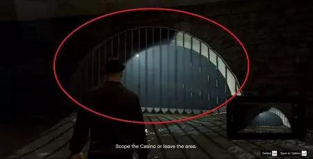 在赌场对面找到下水道隧道。你需要拍摄格栅。