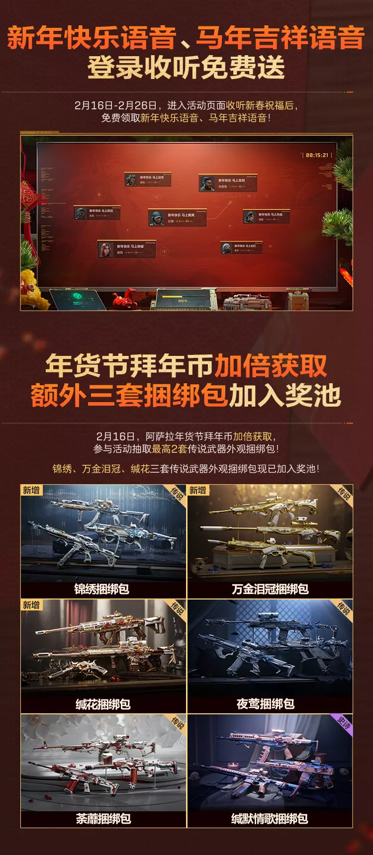 2月27日-3月26日,完成活动任务即可免费领取传说外观捆绑包自选包。