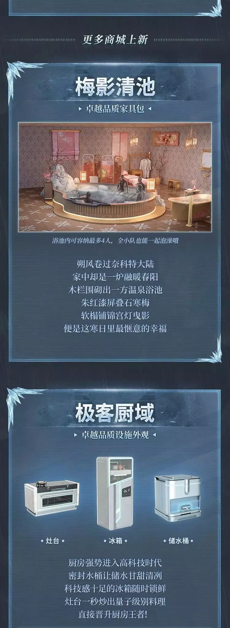 《七日世界》2月26日商城上新星铸宝箱【零之序章】,截止3月2日6:00可使用限时星源助力宝箱收集。宝箱内含伊始之零时装、幽骨生花摇篮、千鳞幻翼家园藏品,还有梅影清池家具包、极客厨域设施、青春挥击时装等上新内容。