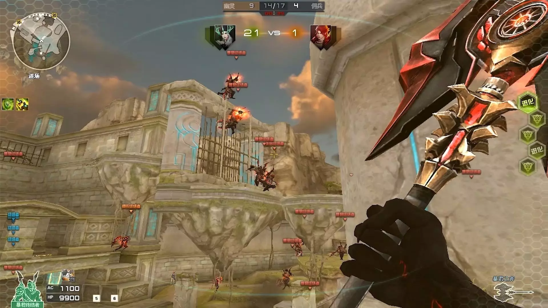 这是一组《穿越火线》生化模式的游戏画面,展示了佣兵与幽灵阵营的对战场景,能看到爱·屠龙、恶魔剑客-炽使者等多款武器道具的实战使用,呈现了不同地图里的激烈对抗过程。