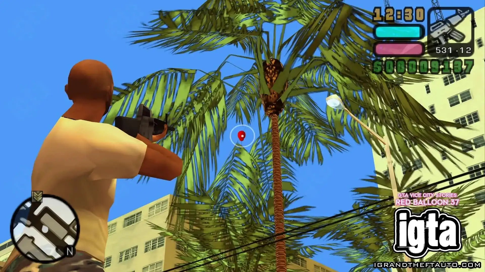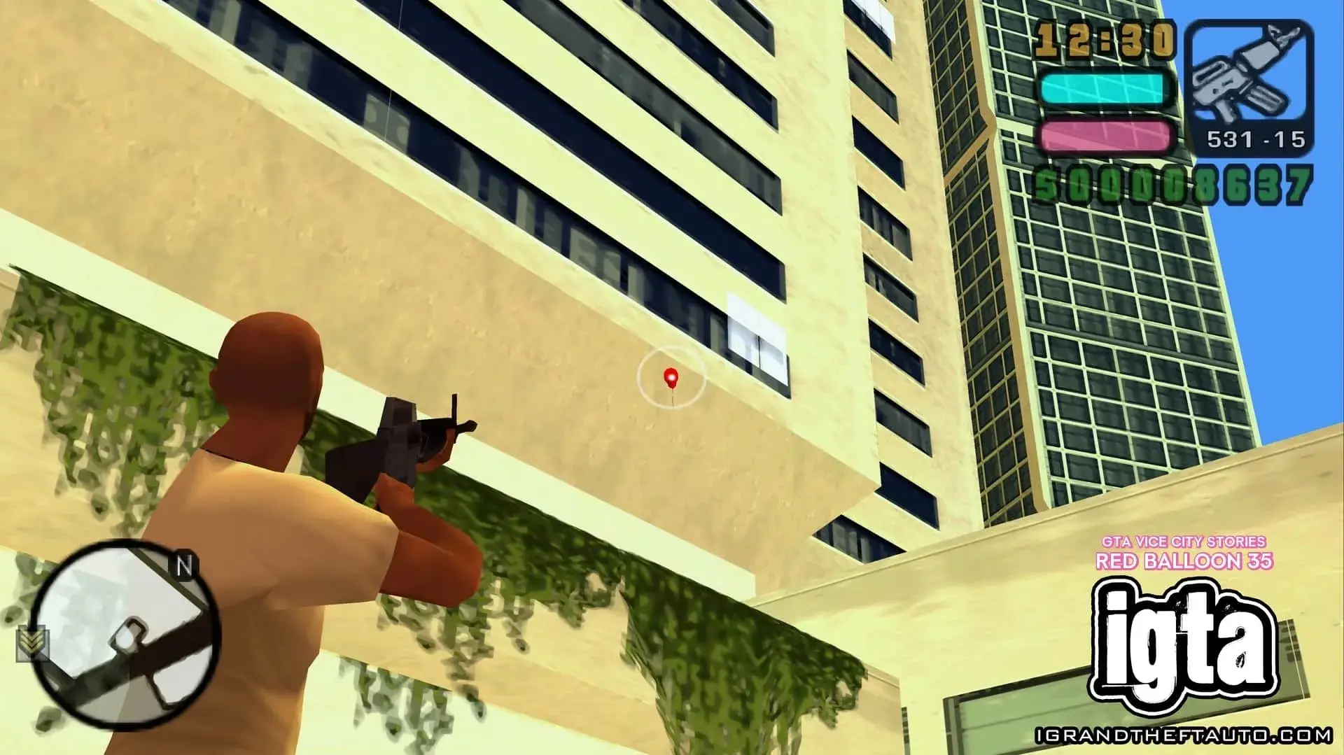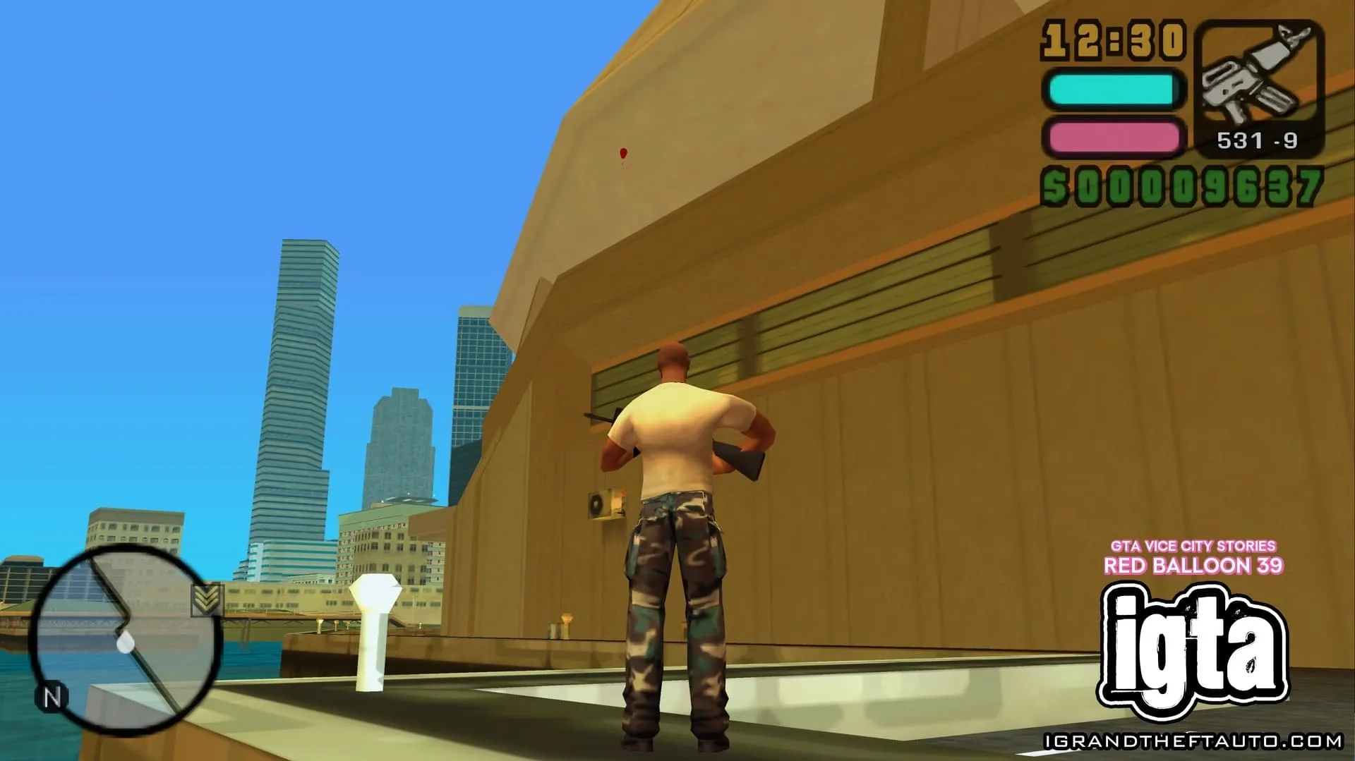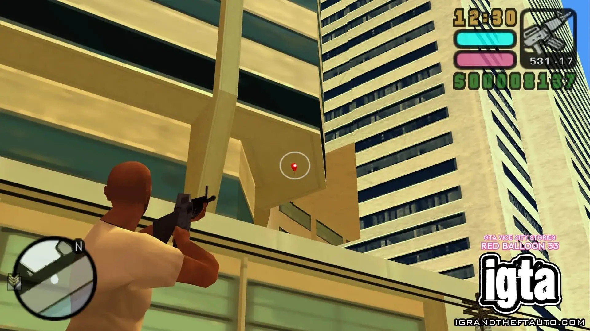 这个气球悬挂在市中心门德斯大厦的高处,它位于海曼纪念体育场和你可能在《侠盗猎车手:罪恶都市》中见过的海曼公寓之间。