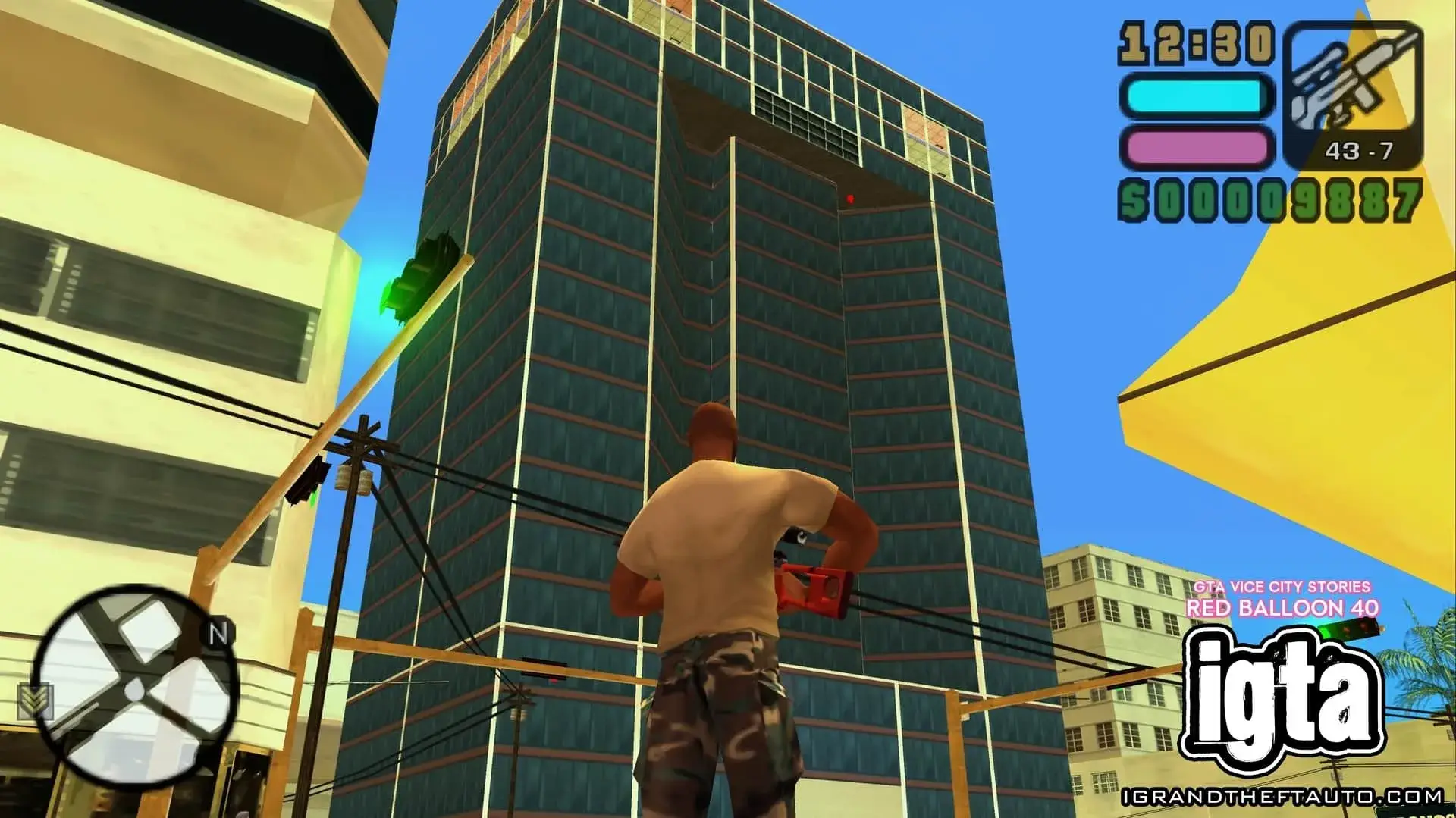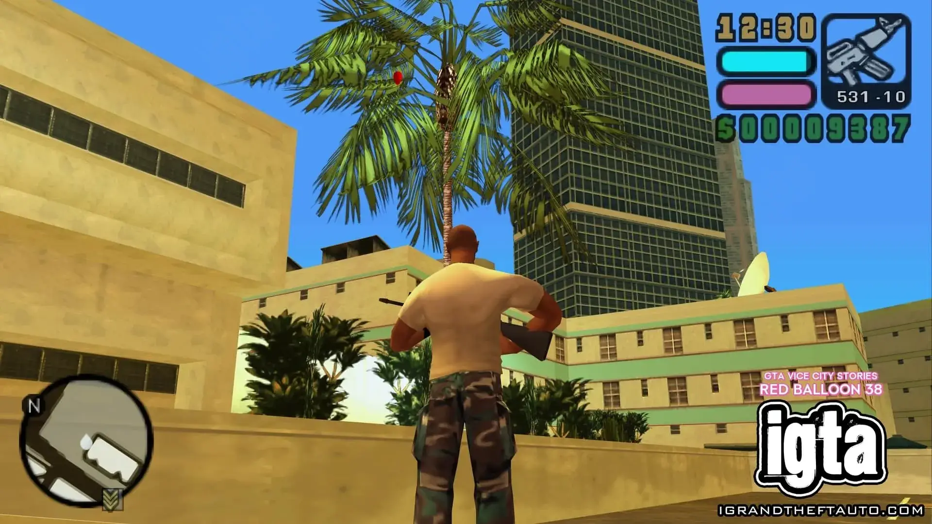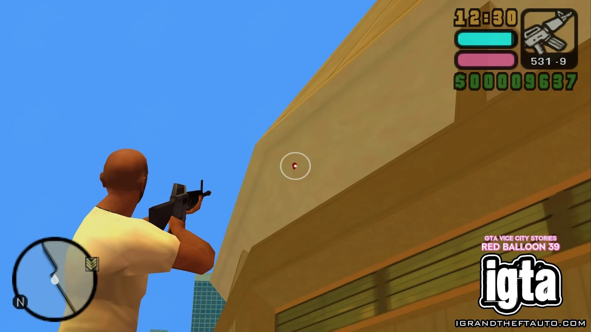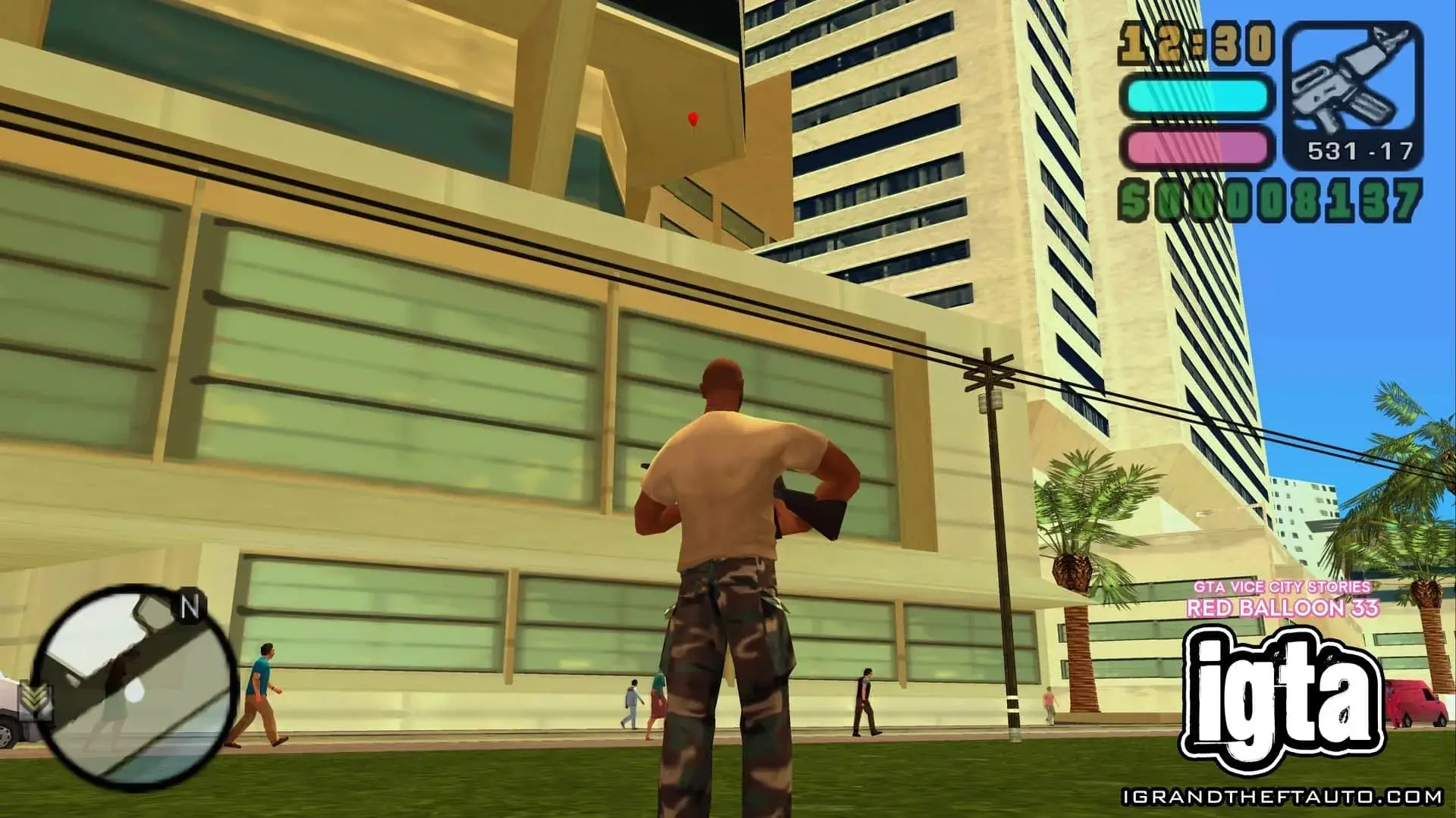 这个气球悬挂在市中心门德斯大厦的高处,它位于海曼纪念体育场和你可能在《侠盗猎车手:罪恶都市》中见过的海曼公寓之间。