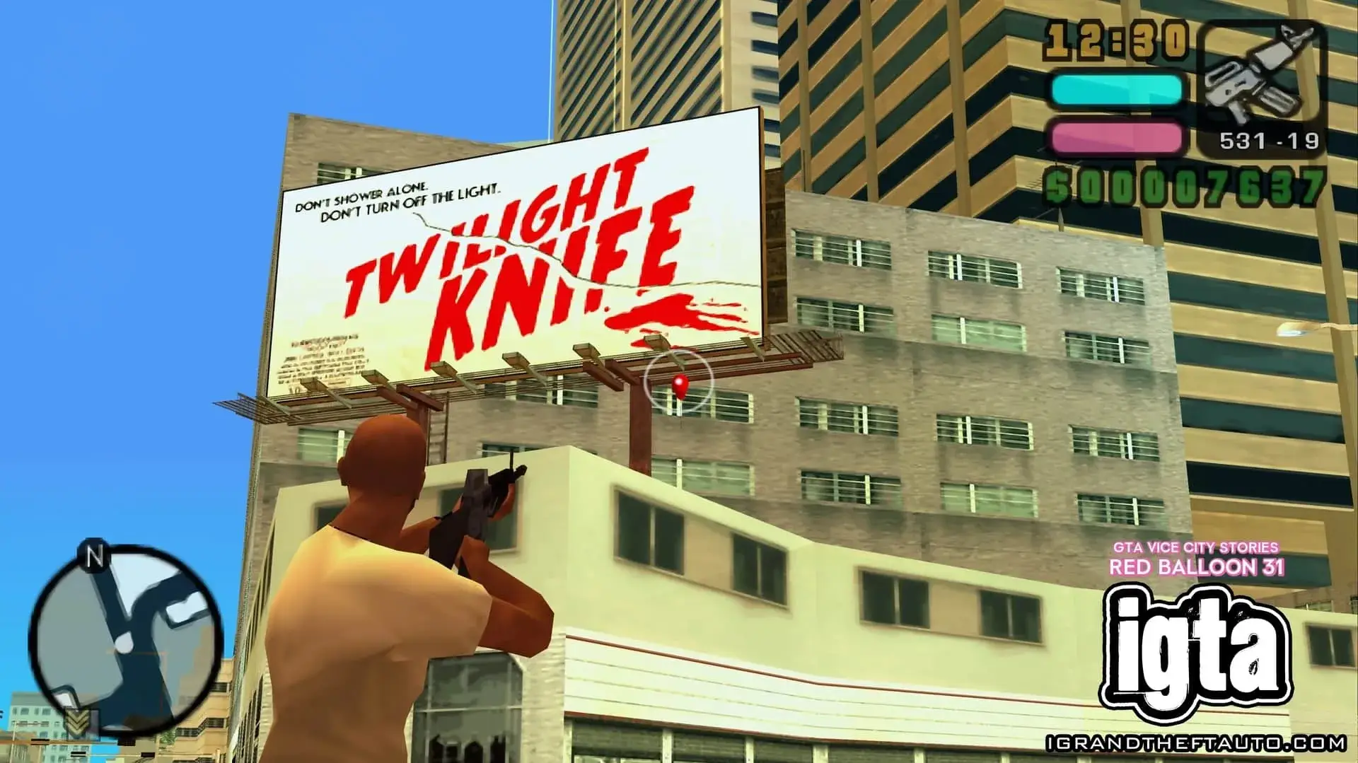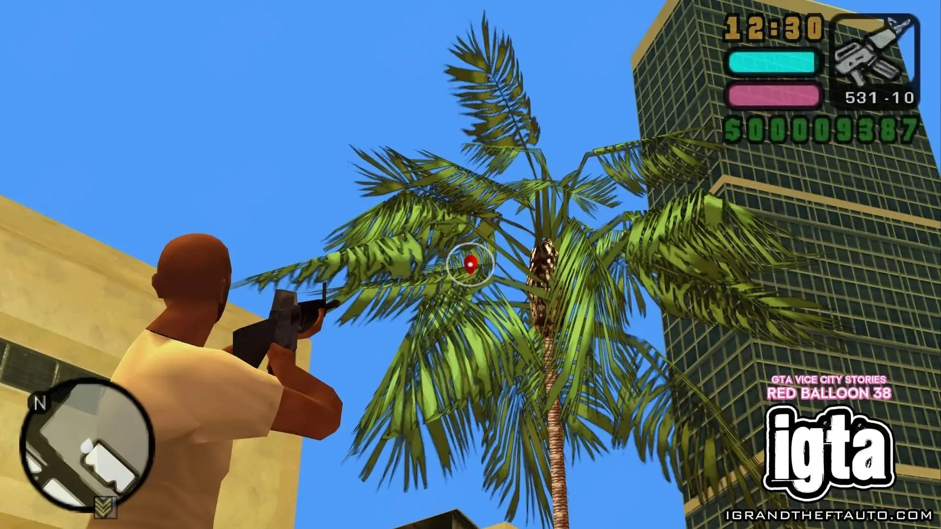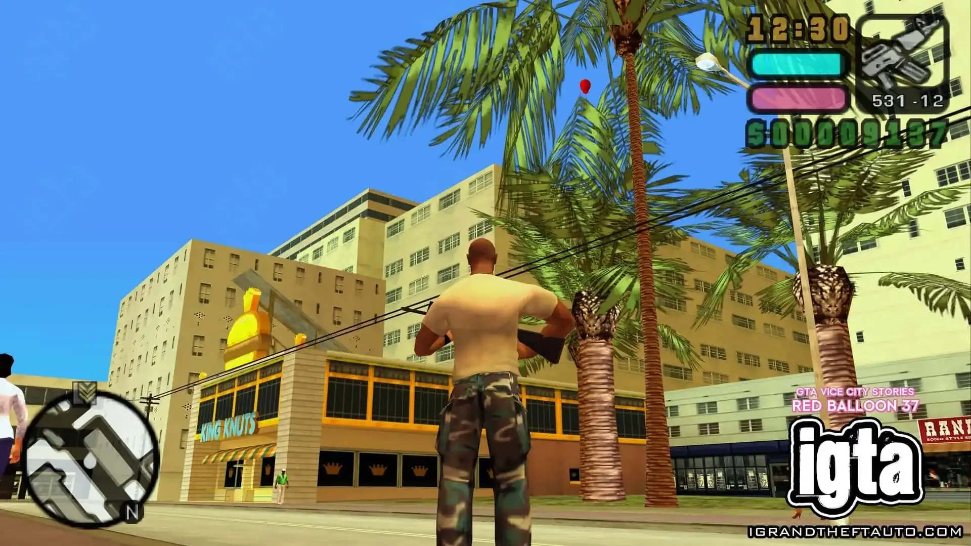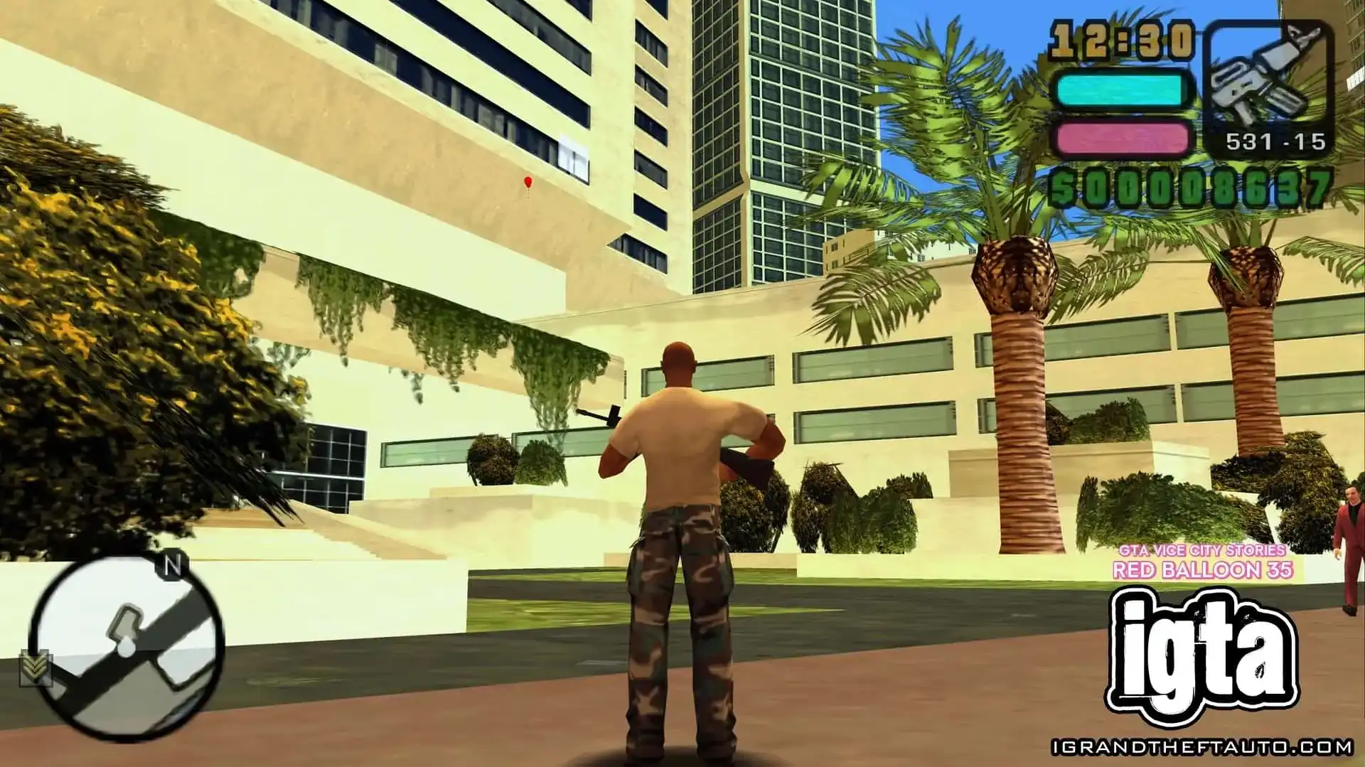 这个气球悬挂在市中心门德斯大厦的高处,它位于海曼纪念体育场和你可能在《侠盗猎车手:罪恶都市》中见过的海曼公寓之间。