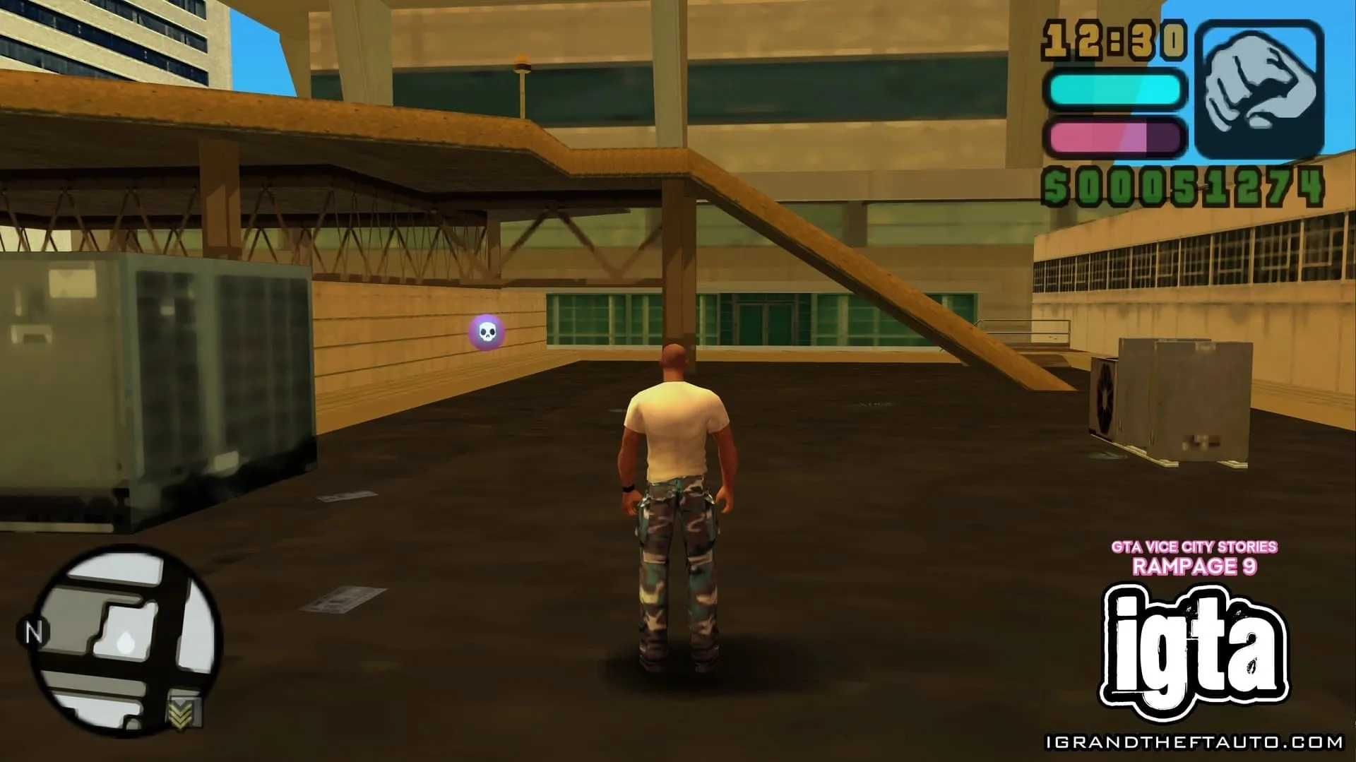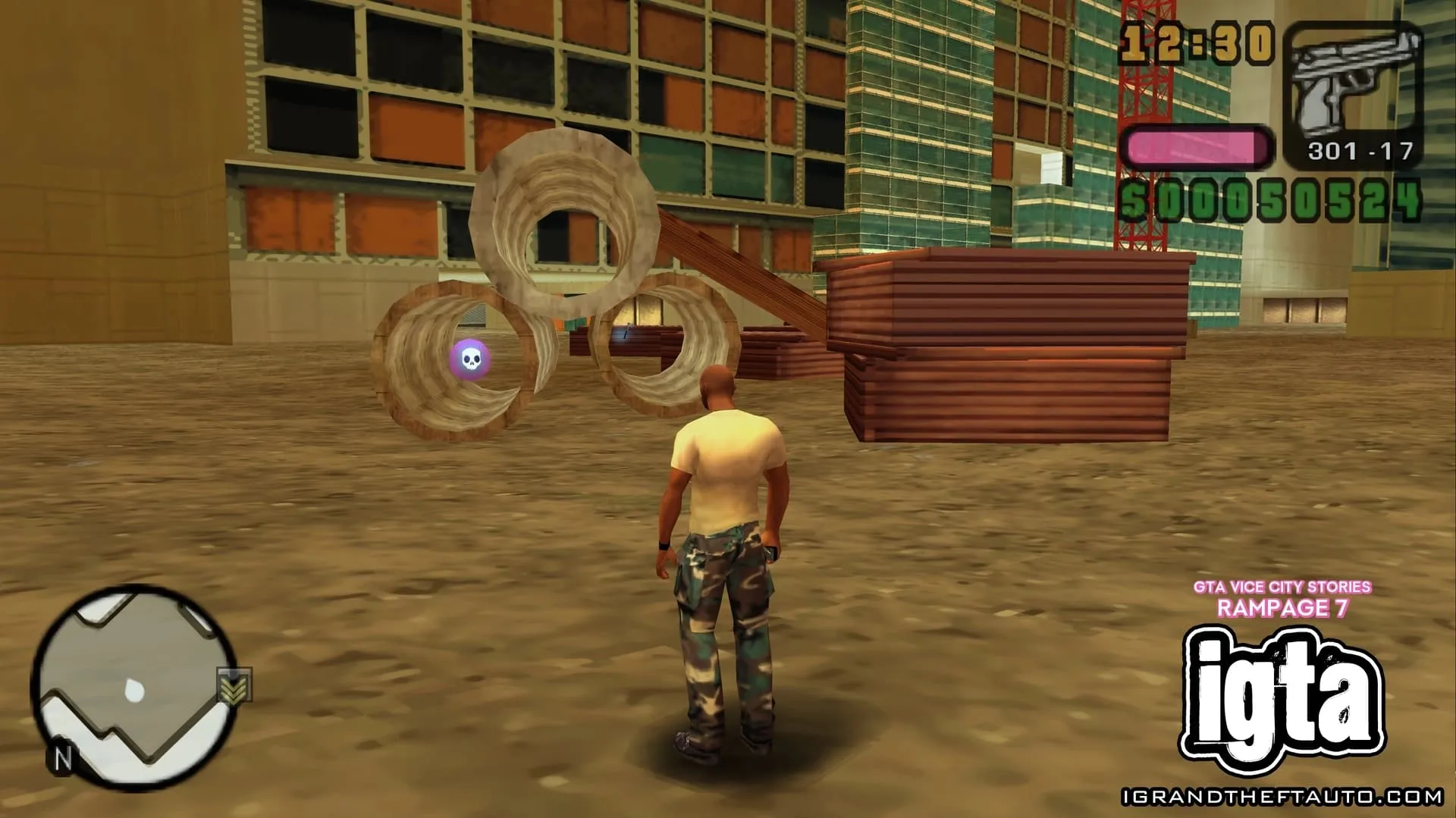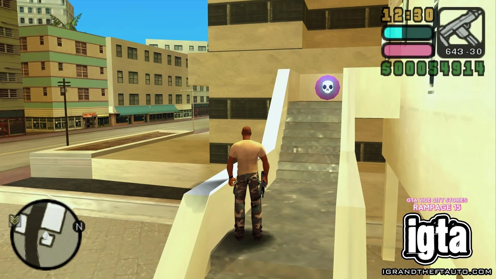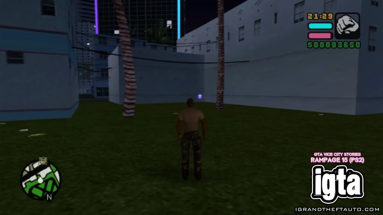 #15.位于市中心。在 PSP 版本中,这场暴乱发生在 Roxor 大楼东侧,沿着 Ammu-Nation 街向上走,楼梯顶端