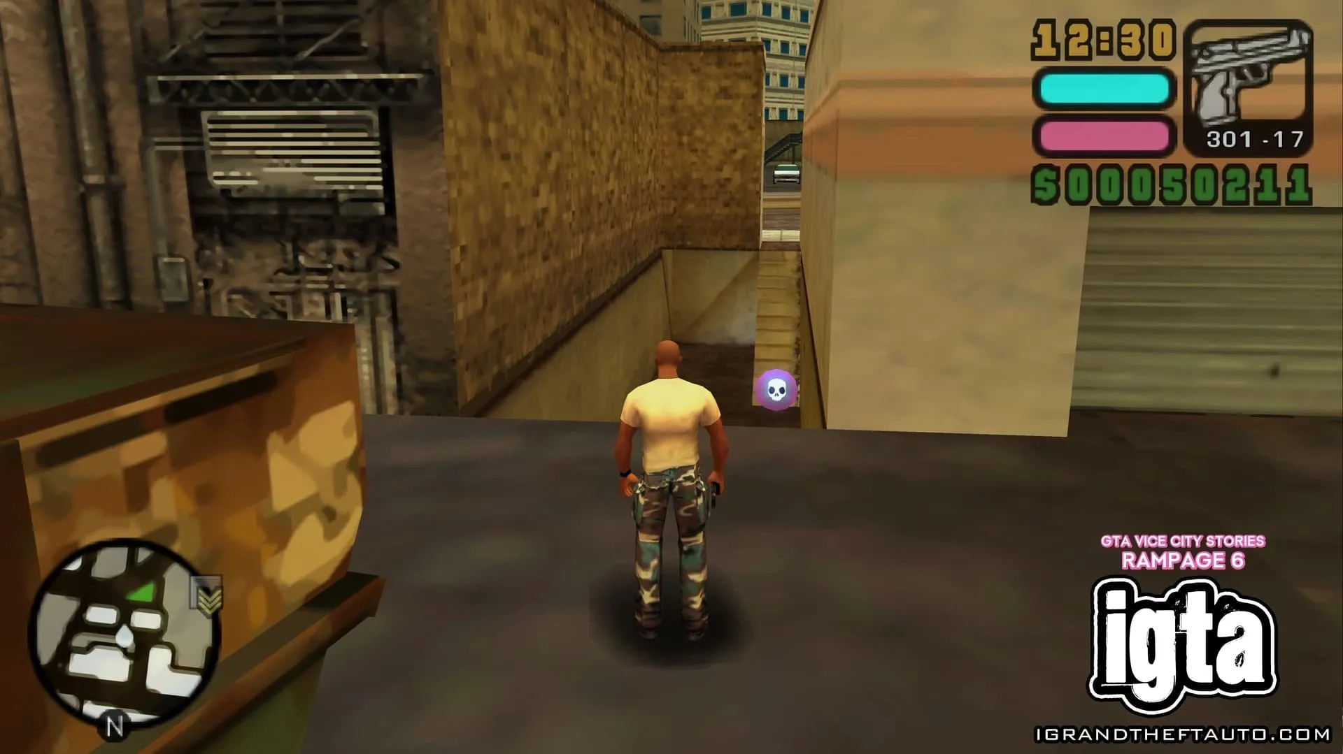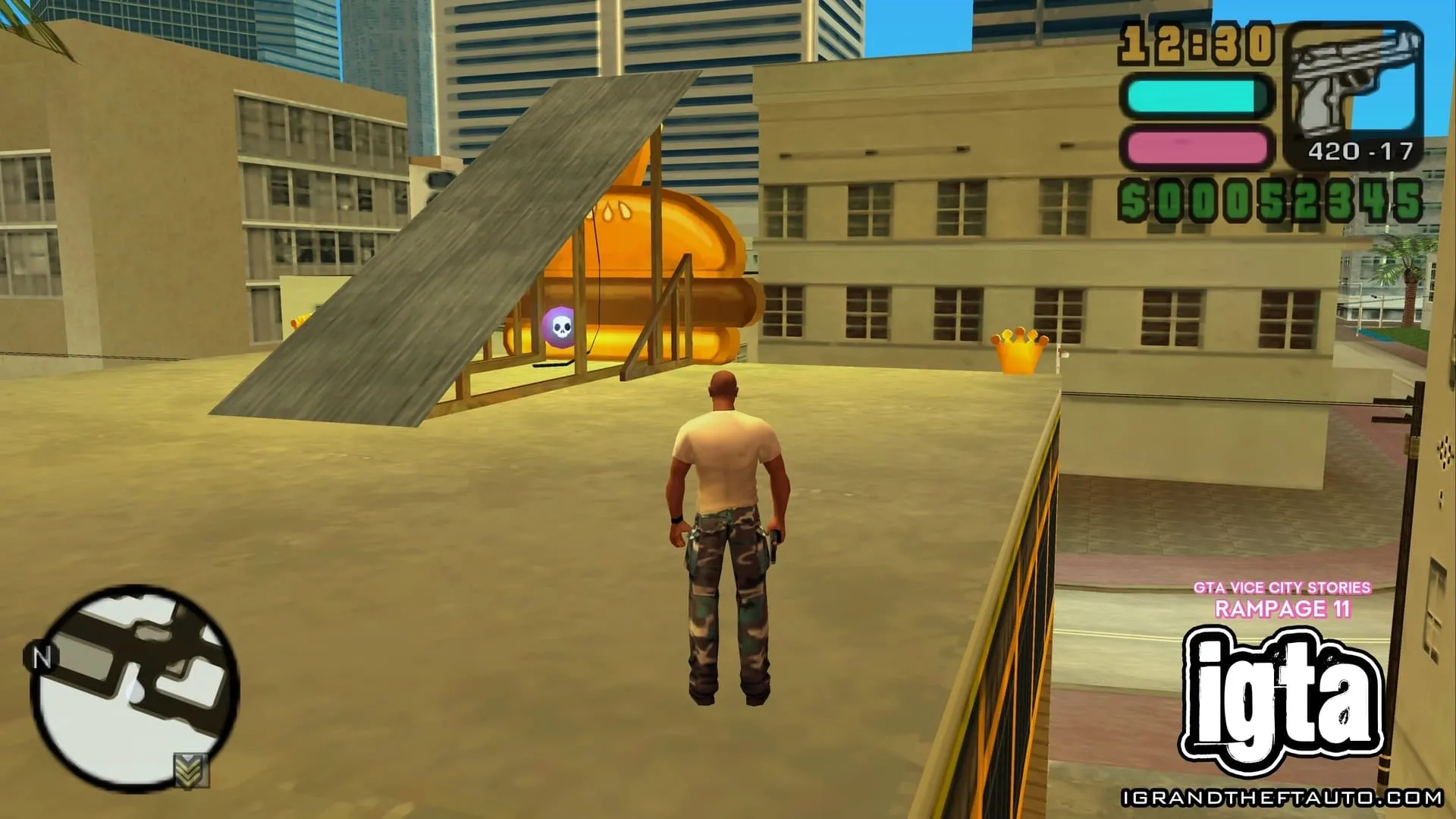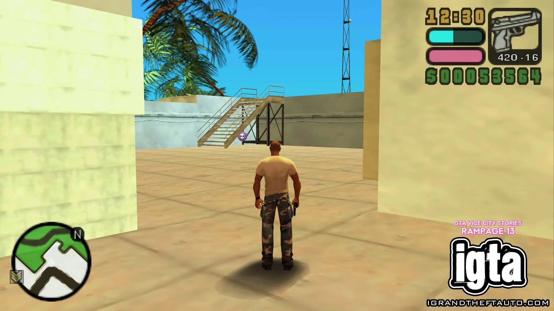 #15.位于市中心。在 PSP 版本中,这场暴乱发生在 Roxor 大楼东侧,沿着 Ammu-Nation 街向上走,楼梯顶端