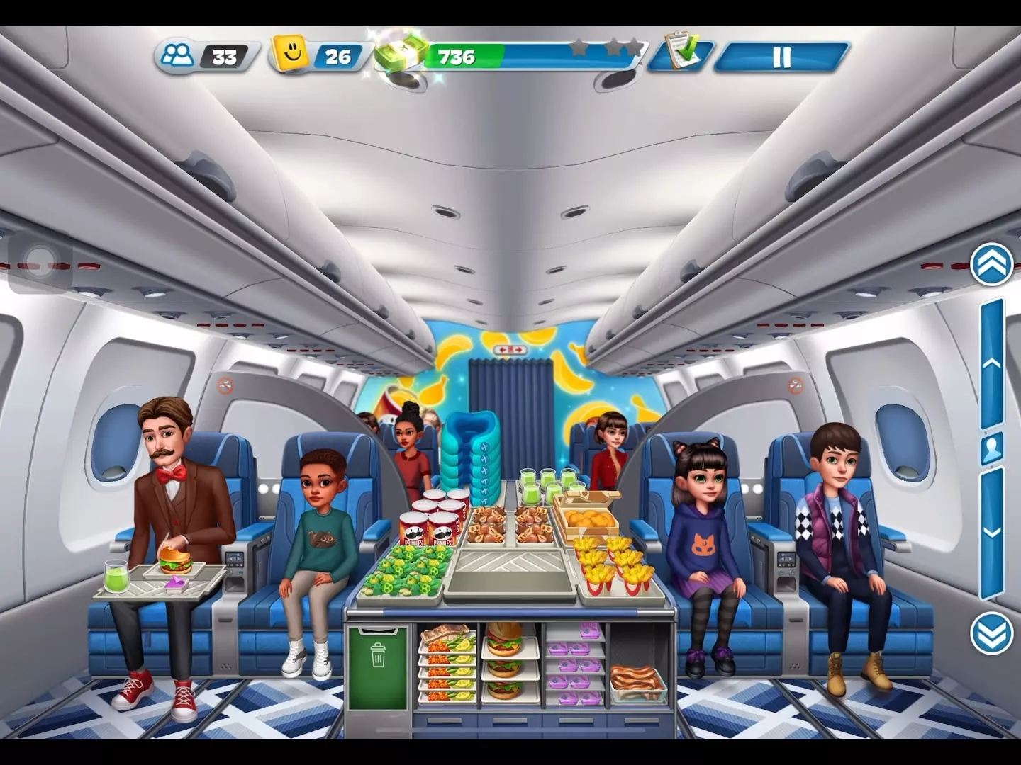 这是《飞机大厨》的游戏实况,展示了丹佛关卡满氪通关46-50关的内容,玩家吐槽更新的新自动机器效率不如手动,同时疑惑丹佛为何没推出新机场。