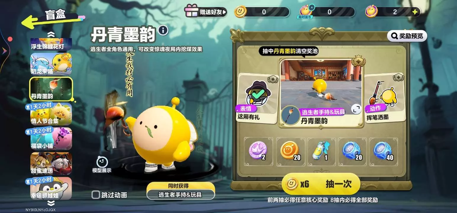 花60蛋币抽奶龙皮,中了10彩虹币,首抽送了动作