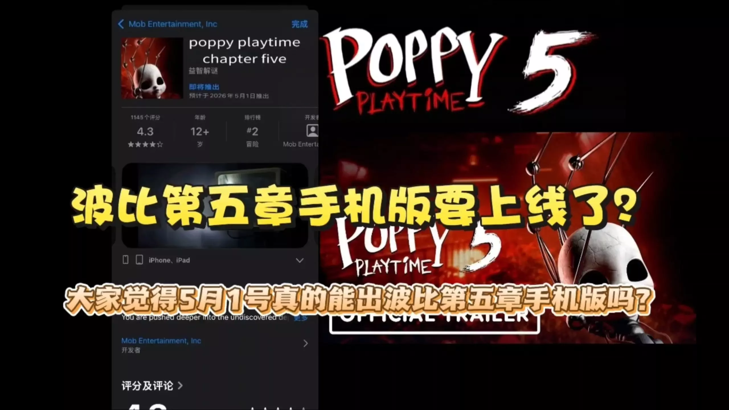 波比的游戏时间第五章手机版要出了?大家觉得5月1号能不能出手机版呢? 敬请期待第五章的主机版和手机版吧!