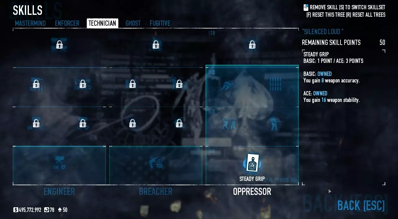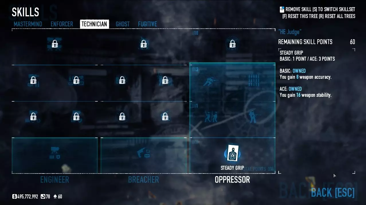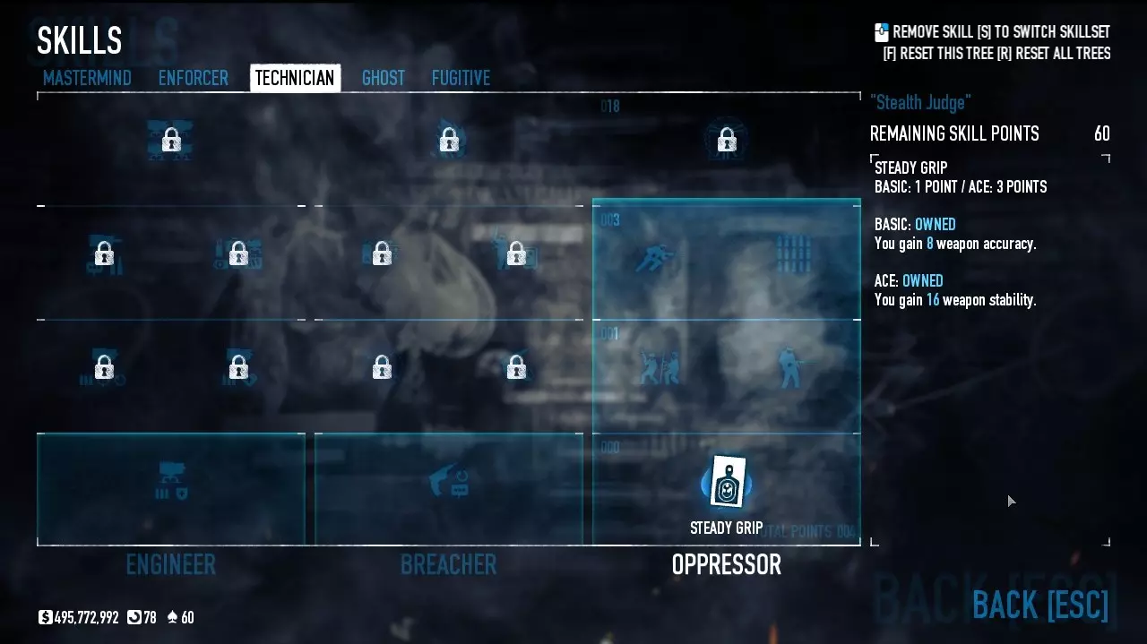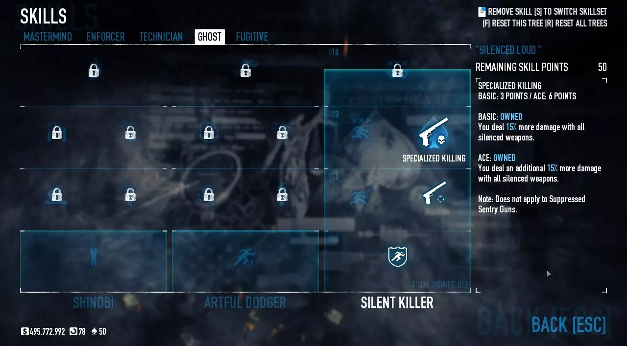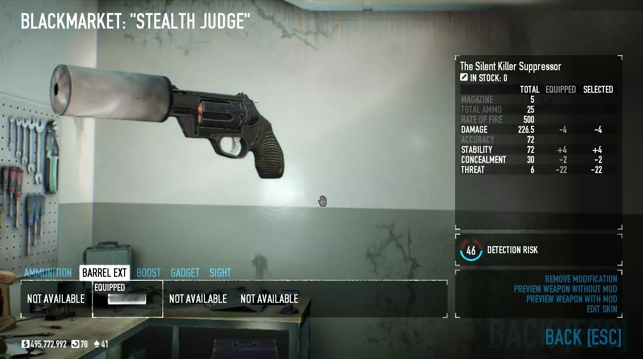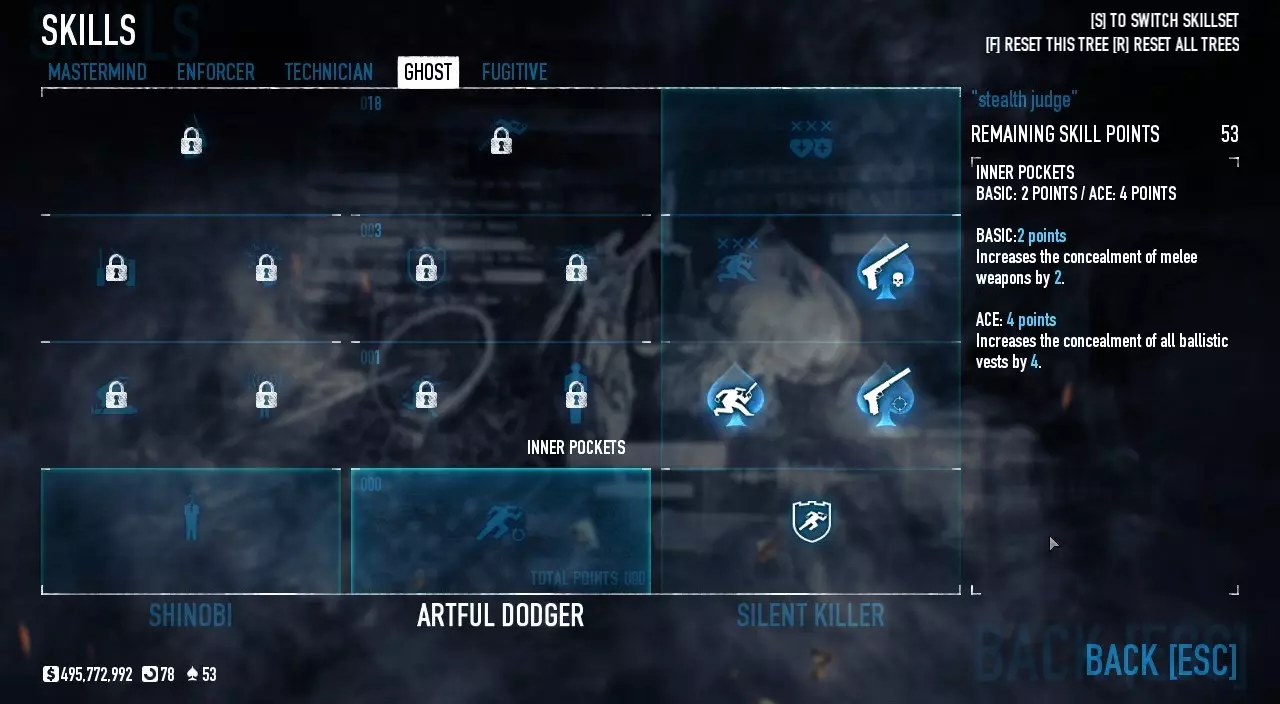 这个法官不需要太多改装,一个消音器和一些好用的技能就够了。为什么不用瞄准镜和激光呢?因为它们会降低隐蔽性,隐蔽性越低,守卫和市民就会更快发现你。 潜行法官的技能: 策划者: