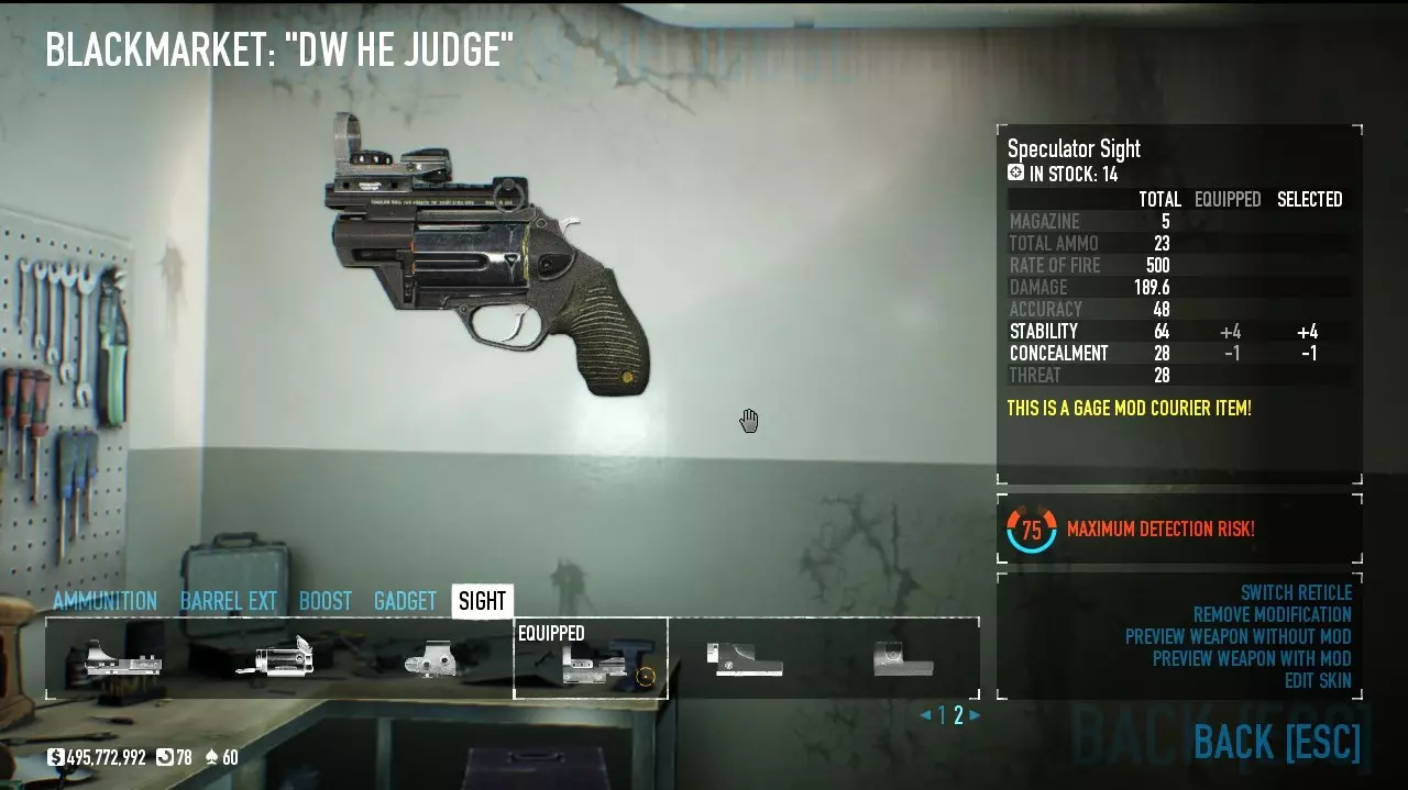 你可以用激光改装它,不过我没这么做,因为我只在推土机和护盾附近使用它。 潜行判官 判官是一把非常好用的潜行武器,因为你可以把目标射到角落里、门后,这样就没人能发现他们了。但如果你不能完美使用它,就会发生这种情况: