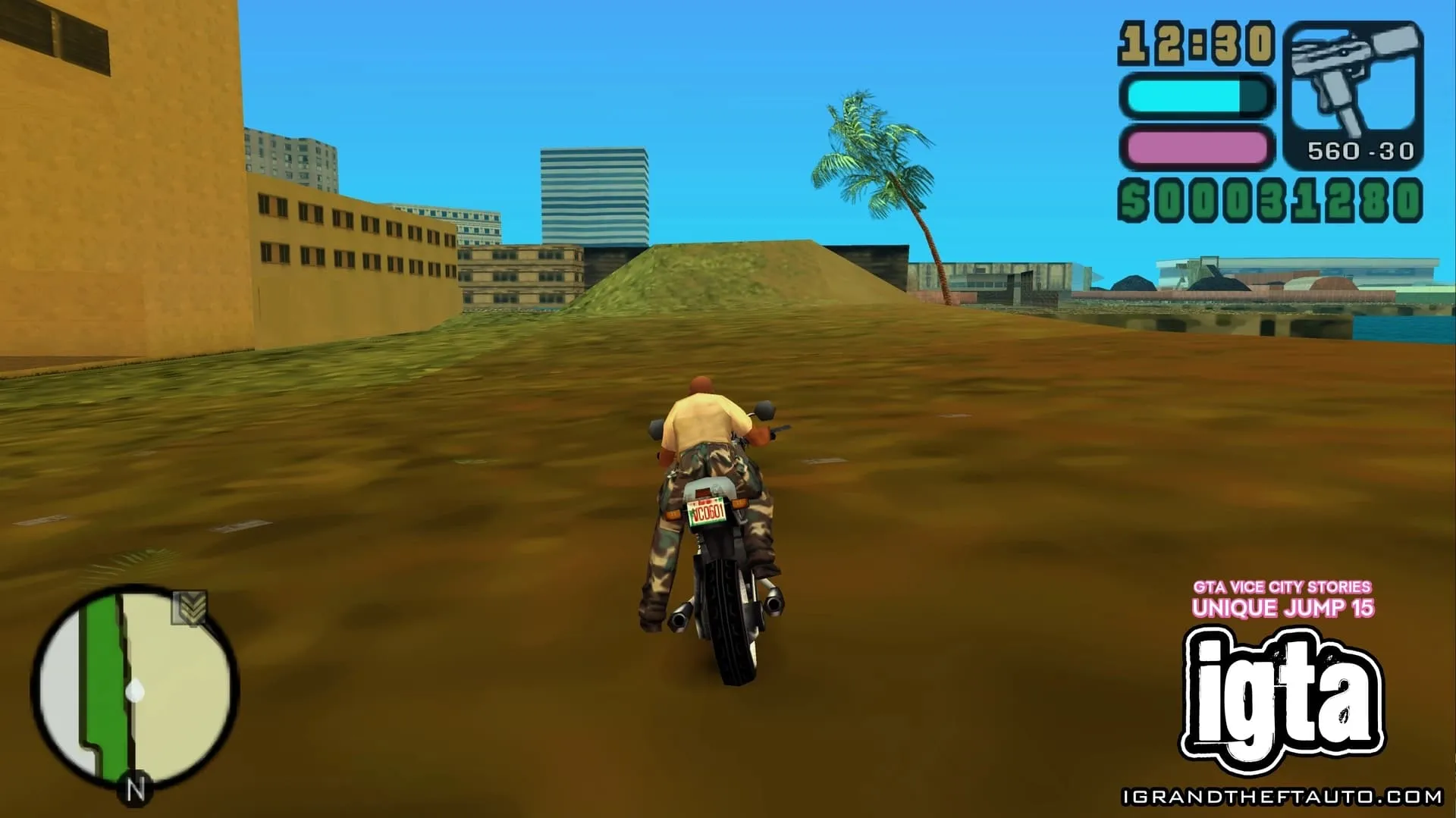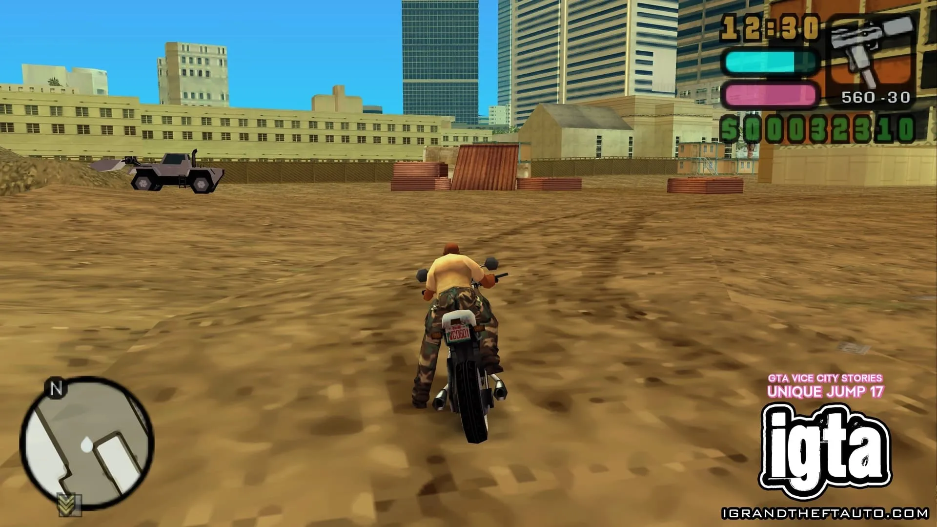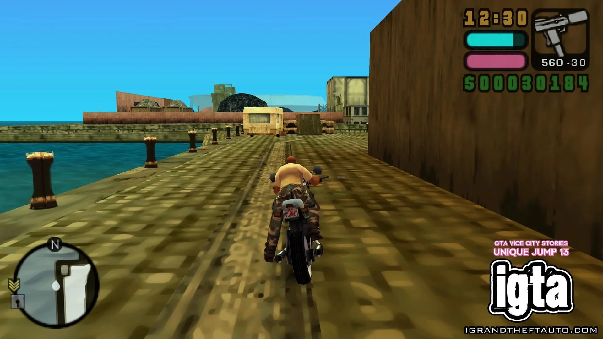 #13.在小海地,从南向北跳跃即可找到。一个木制斜坡架在一堆废弃汽车上,旁边是一辆旅行车。它位于通往第二个跳跃点的路径的另一端。