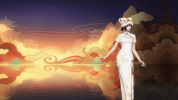 狮纹与烟火光影交织