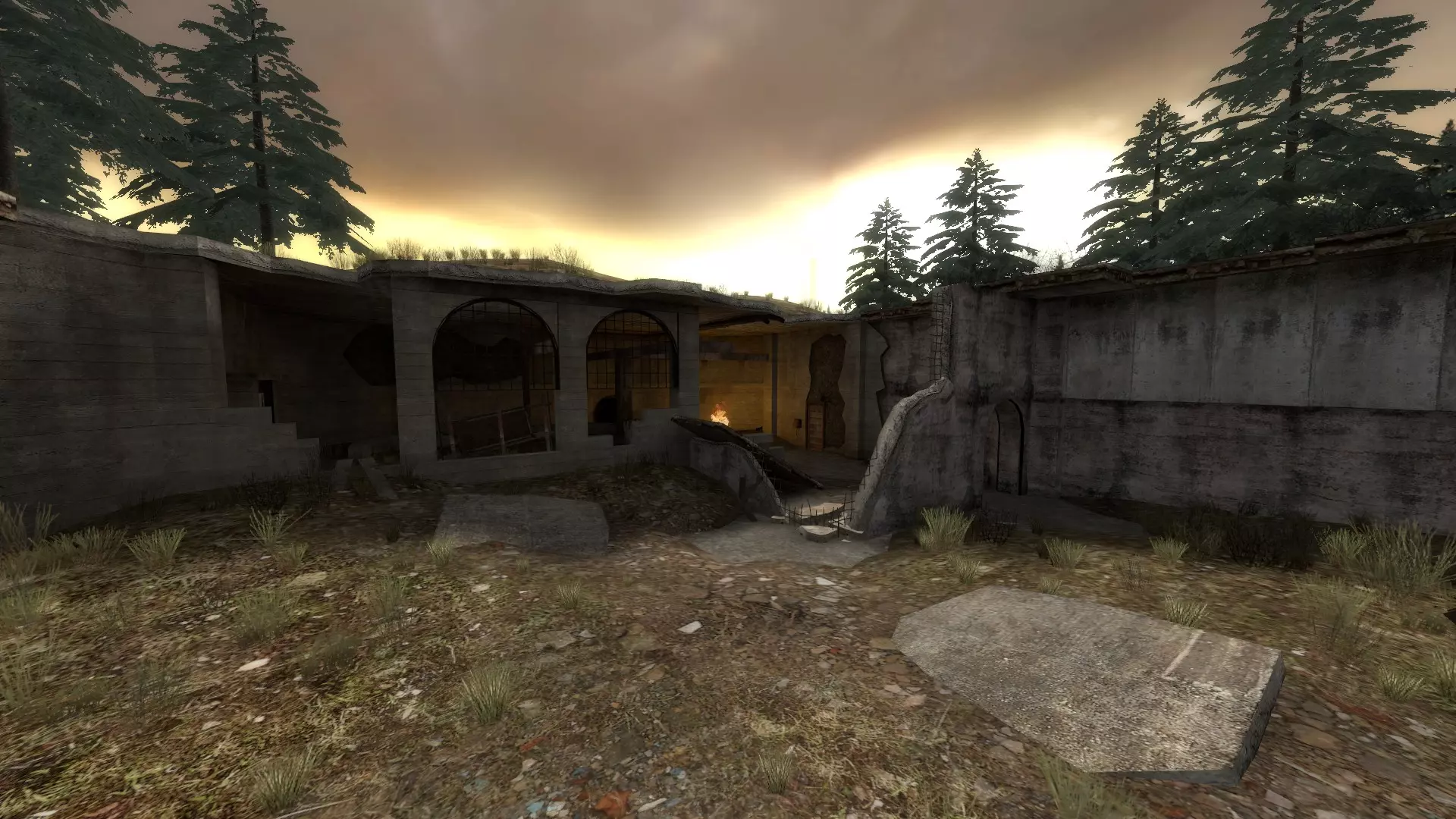 又是地堡!不过这次你不会看到开启的门,有些地方甚至连天花板都没有……还有墙壁……总之如你所想,这个地堡完全不适合居住,只剩下一些残骸。该地图需要半条命:起源的素材。 Gm_Hideout 你以为这只是废弃建筑?并非如此!在机库里,恐怖分子或者某些帮派分子决定把这里当成他们的基地!那里曾经一片忙碌!或者说曾经忙碌过,因为机库里的人都不知去向了。总之,机库里有一个神秘的地下武器制造厂。这张地图需要来自《半条命2:第二章》和《反恐精英:起源》的内容。