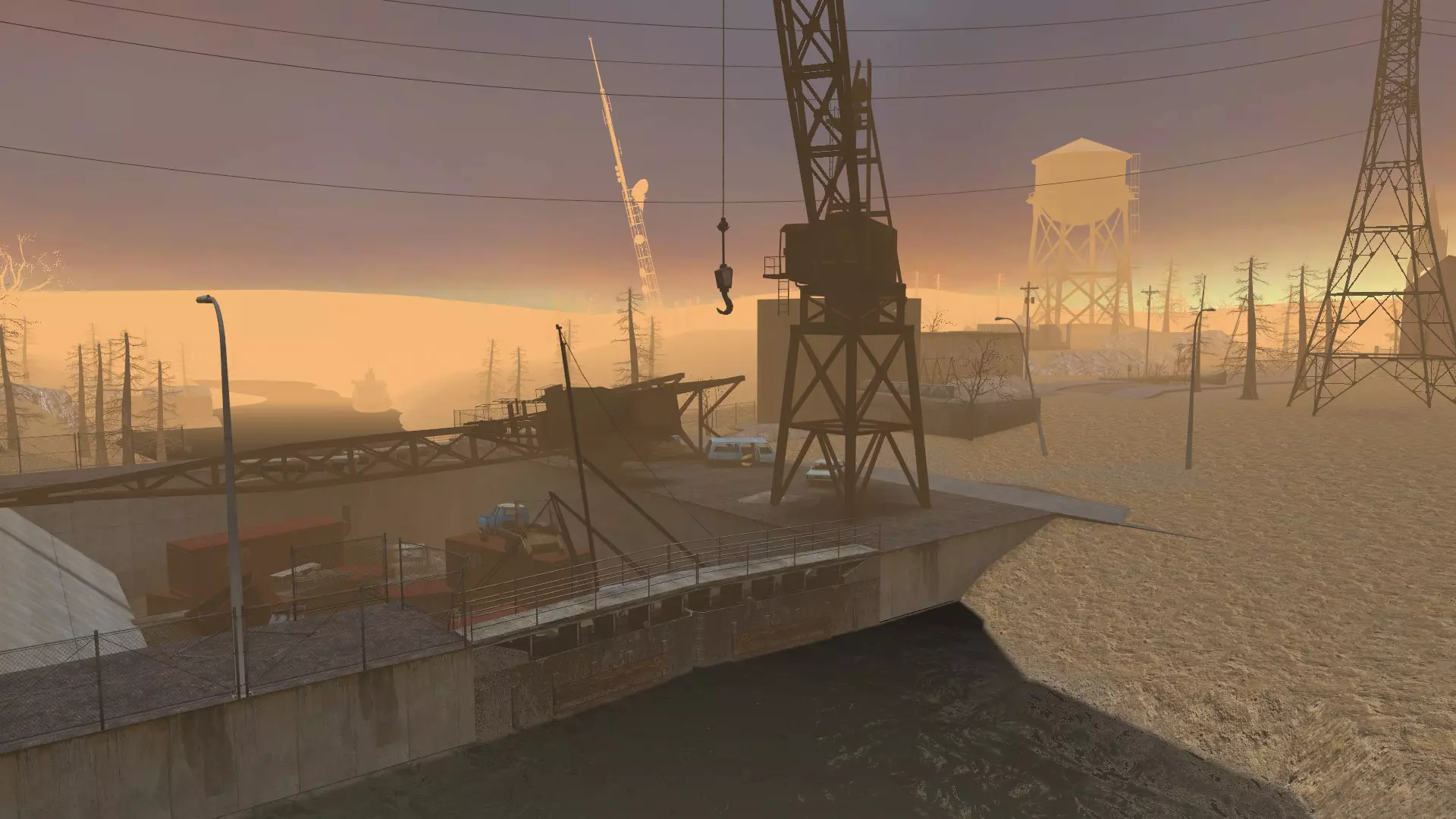 巨大的废弃地下墓穴与下水道相连。这是一张非常漂亮的地图,很适合截图。地图上的天气会变化,从晴天到下雨的夜晚(当然这里我有点夸张了,其实只是变得阴沉)。此外,当下雨开始时,下水道会积水到腰部!这是个非常有趣的设计。哦对了,还可以在这张地图上玩TTT(恐怖城镇)。id=229000479 废土地图
