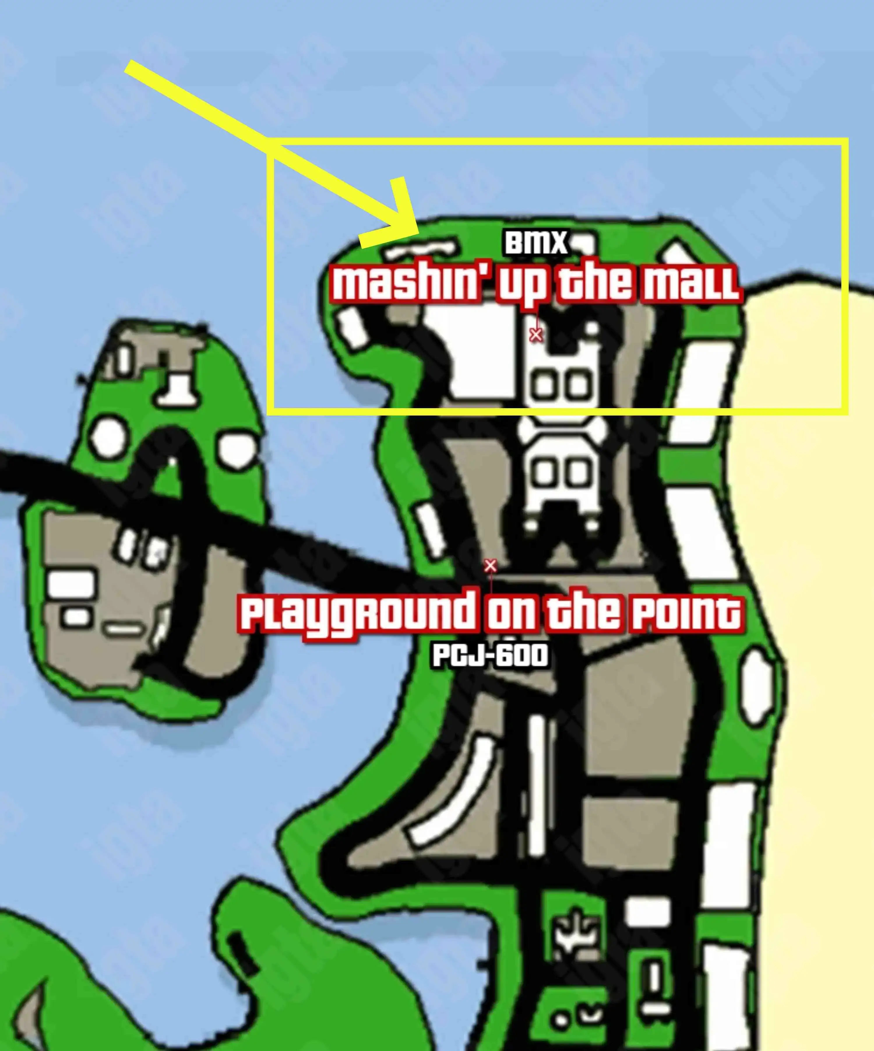 位置:位于西岛北部的 Vice Point 购物中心西北角,停放着一辆 BMX 自行车,旁边有一个写着“赢取这辆自行车!”的展示柜。