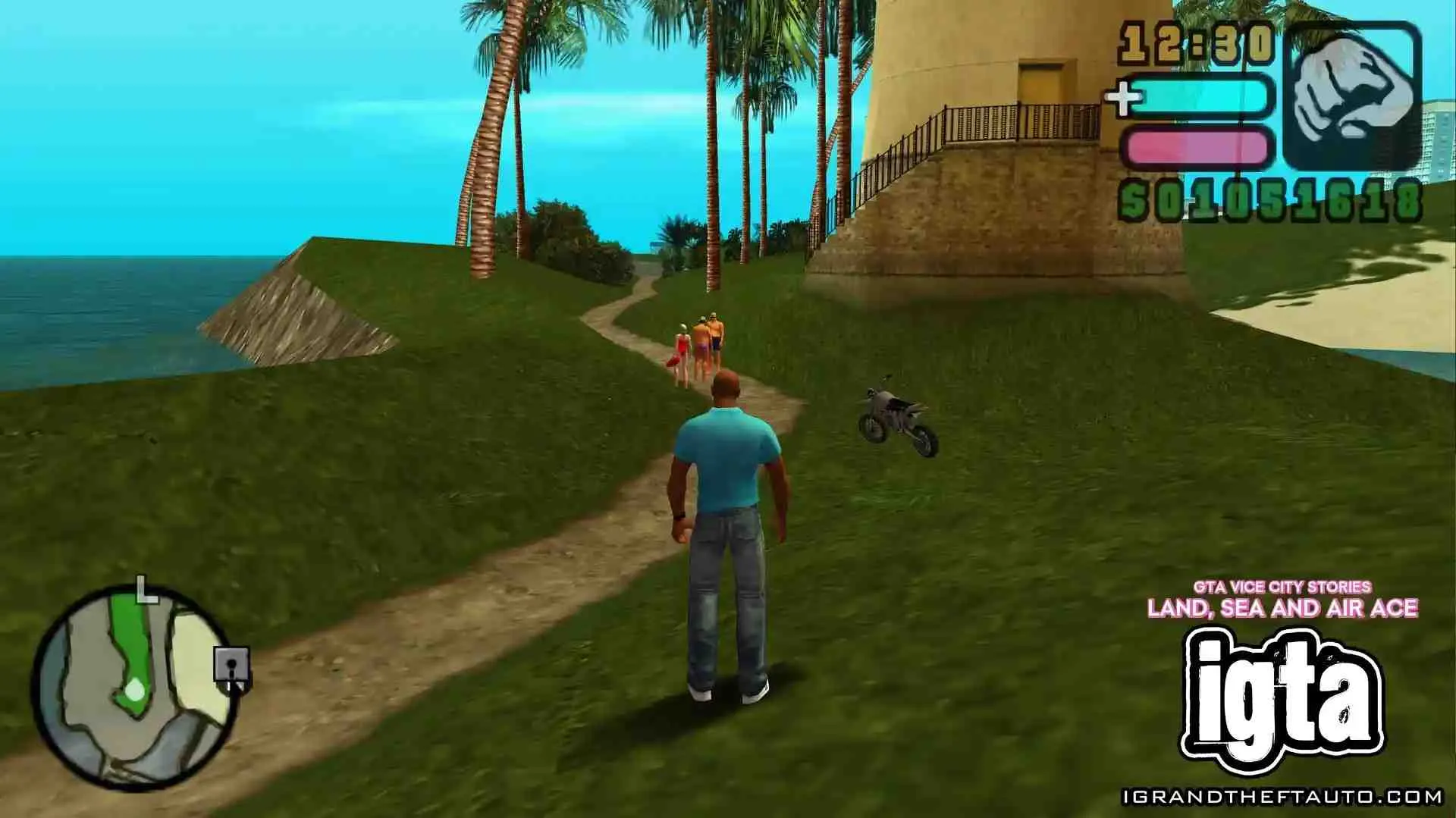 位置:位于东岛海滩东南部的灯塔旁边,停着一辆摩托。