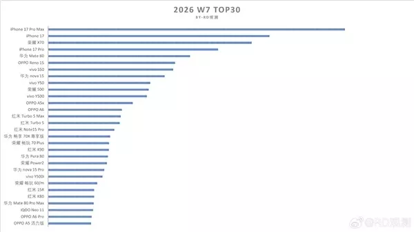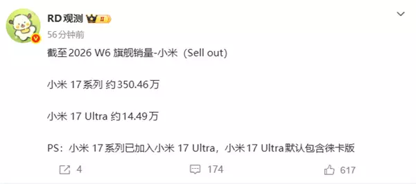 快科技2月26日消息,据博主“RD观测”透露,截至2026 W7,华为Mate 80系列销量约357.89万。 作为对比,截至2026 W6的小米17系列销量约350.46万,是国产新一代旗舰中销量第一。 目前小米17系列最新数据暂未公布,但预计华为Mate 80系列很快就能超越,成为新一代国产旗舰冠军。
