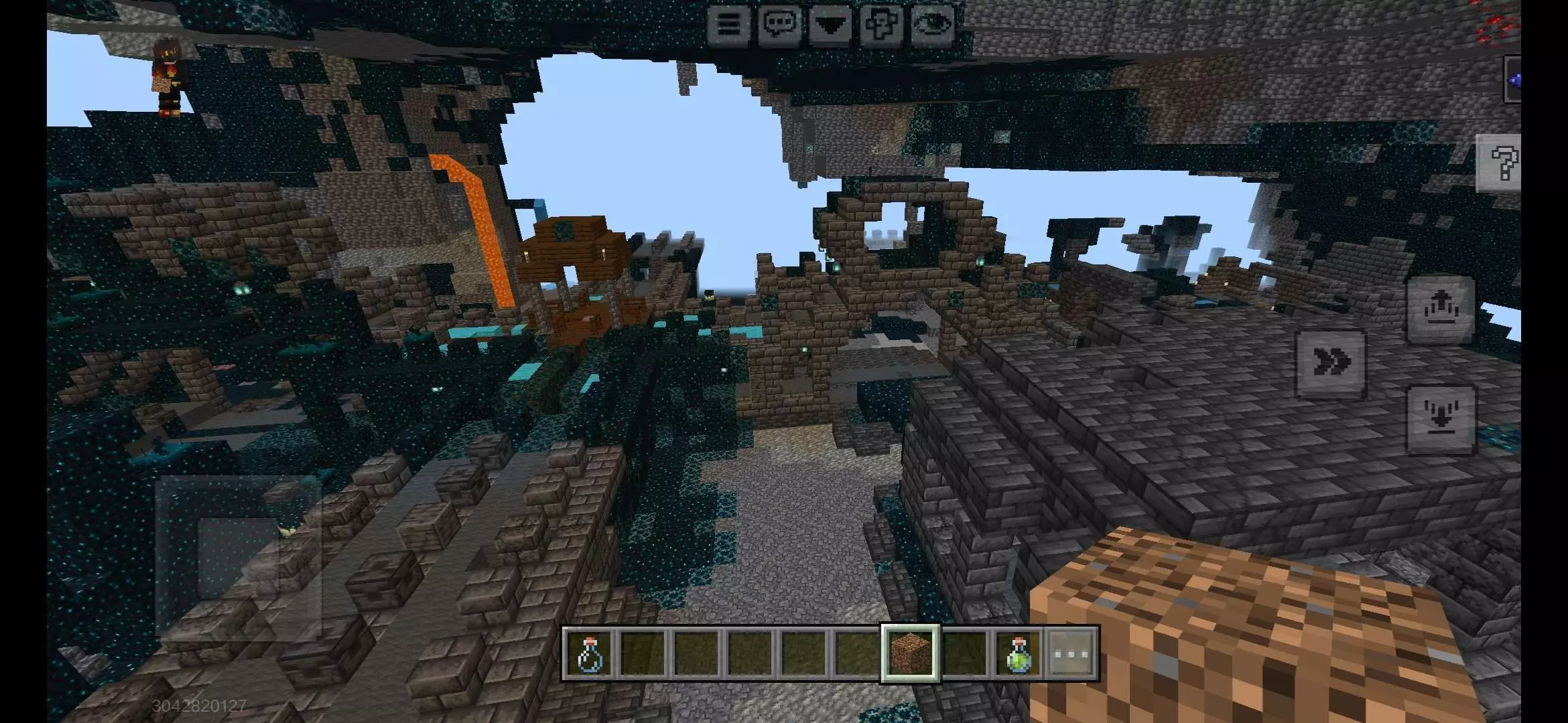 从出生点下挖,就有一个巨大的矿洞,在向下挖,还有一个巨大的水矿洞,在下挖还有一个巨大的矿洞,并且也就隔了两三格,除了第一个大矿洞和下面的水矿洞,第三个矿洞附近就有钻石,钻石旁边就是远古城市,没用过种子的,可以试一下