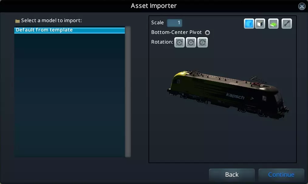 我花了些时间才习惯模组的使用方法,以及如何正确利用它们,通过单独的车厢资产来打造属于自己的列车。 据我所知,目前并没有能解释所有相关内容的“官方”指南。 所需物品: 1. 扩展资产编辑器 这个模组是制作混合列车的必备工具,没有它,你只能用单个车厢资产来制作列车。 2. 车厢变体加载器 该模组用于正确加载车厢资产上的子网格遮罩。(如果你的车厢资产不使用子网格,则不需要此模组。) 3. 货运/客运列车引擎资产 可以是创意工坊(或游戏本体)中的任何货运或客运列车引擎。 例如:ES64U2 4. 货运/客运车厢资产 可以是创意工坊(或游戏本体)中的任何货运或客运车厢。示例:EANOS 挂车包 提示:如果你订阅了创意工坊中的任何列车,你也会获得挂车,并且可以在资产编辑器中使用它们。 开始使用 首先,在资产编辑器中,你需要先加载一个火车头(可以是游戏自带的或其他任何火车头资产)。 但它必须是火车头(无论是货运还是客运火车头都没关系),否则你无法在该资产后面添加挂车。 找到你想要的火车头资产后,点击继续即可。