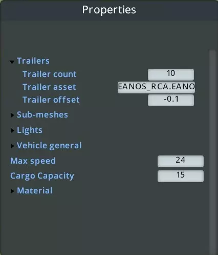 重要提示:此步骤后请勿再次更改属性面板中的任何参数,否则你的布局将被覆盖,且所有挂车的首个挂车会被替换。接下来,你需要使用车辆面板替换需要不同资源的挂车。在面板的最顶部,有一个包含所有挂车(包括引擎)的下拉列表。