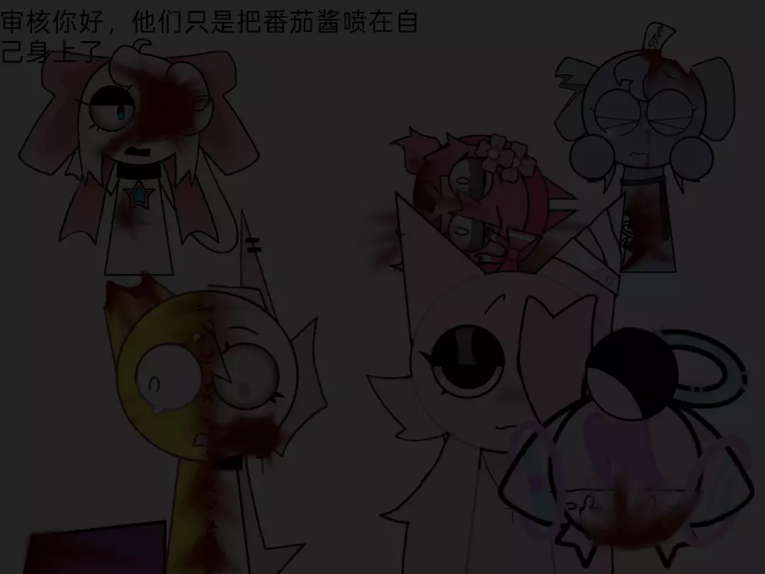 审核你好,他们只是把番茄酱喷在自己身上了😭