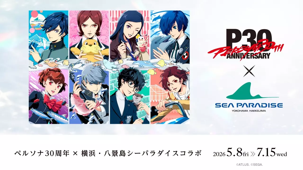 中间的【Joker】已于前段时间开启预订 女神异闻录 ✖ 横滨八景岛海岛乐园 女神异闻录系列30周年纪念 ✖ 横滨八景岛海岛乐园 合作活动新插画于今日公布。 合作活动举办时间:2026年5月8日-2026年7月15日 活动期间将有联动主题酒店,使用全新插画制作的原创周边等。