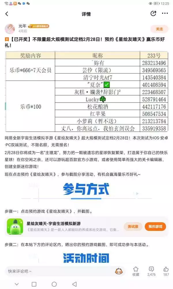 看到《星绘晴天》超大规模测试定档2月28日的消息,我立刻预约了这款宇宙生活模拟手游。预约成功后,我把截图分享到评论区,期待能赢取乐币和会员。