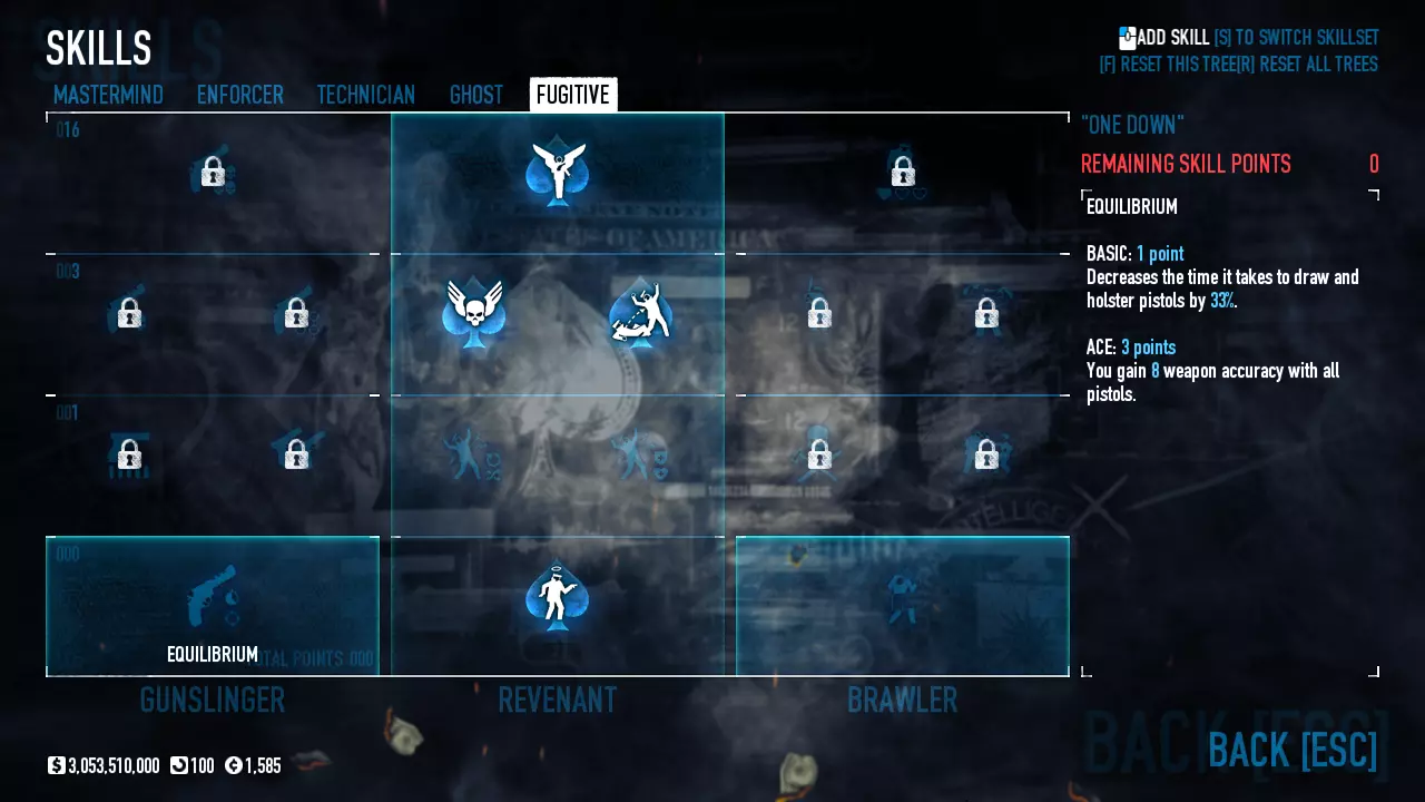 装备: - 主武器:双持奇马诺定制手枪(IPSC补偿器、精准度、聚合物手电筒、人体工学握把、扩展弹匣、长枪管) - 副武器:中国喷40毫米榴弹发射器(精准度)或仲裁者榴弹发射器(轰炸者枪管、精准度、riktpunkt放大镜配件、太阳能瞄准镜) - 近战武器:电击指虎 - 投掷物:炸药 - 装备:急救包 - 护甲:两件套西装 - 技能卡组:浪人 - 技能:
