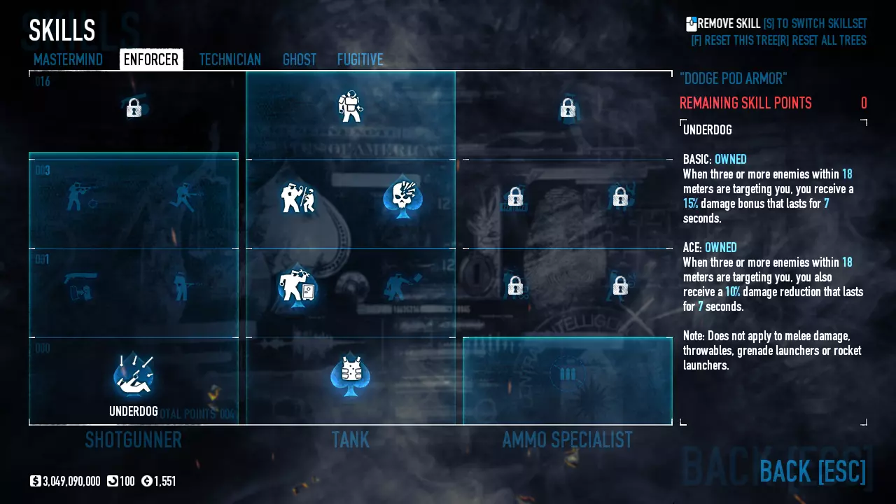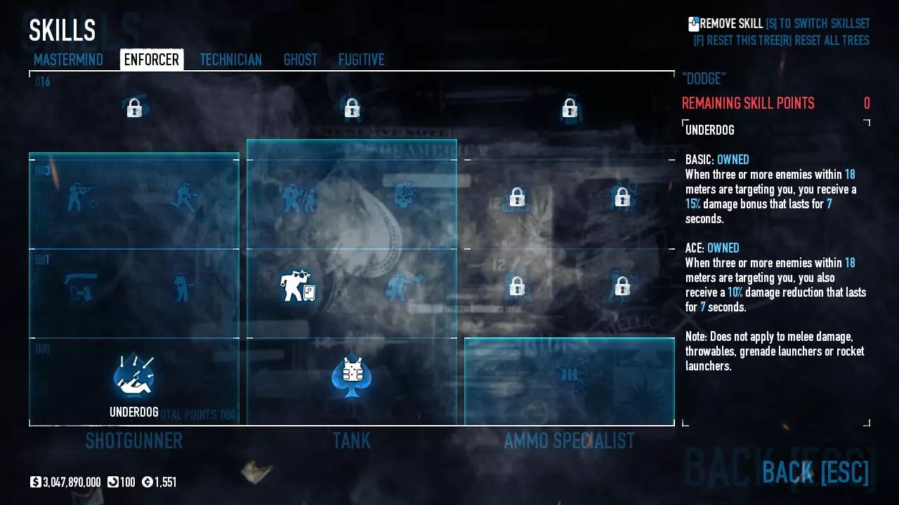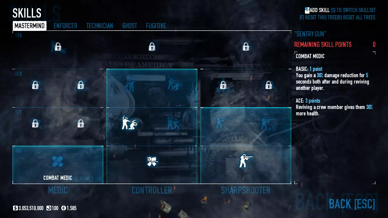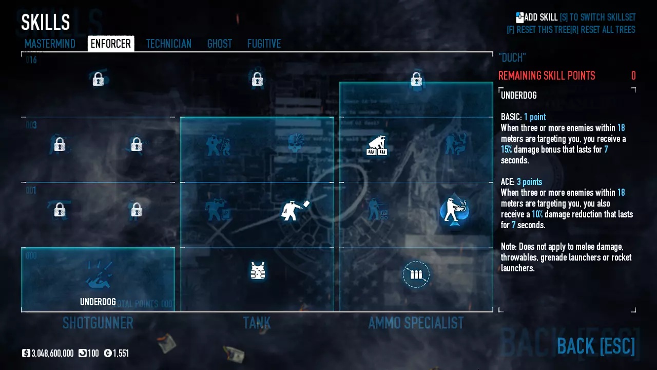 Celem tego poradnika jest omówienie najkorzystniejszych Buildów. Omawiamy sobie ich rodzaje oraz dopasowujemy wybory w zależności od preferencji i stylu gry graczy. Wstęp: Jak długo można czuć się bezkarnym dokonując spektakularnych napadów, zabijając po drodze stróżów prawa i niejednokrotnie nie oszczędzając nawet niewinnych cywilów? Jeśli zagrałeś w tą grę po raz pierwszy i dołączyłeś do przypadkowego pokoju, niekoniecznie na oczekiwanym poziomie trudności, mogłeś boleśnie się przekonać jak smakuje dawka ołowiu robiąc sito z twojego nowego garnituru uszytego na pierwszą komunię ;) Jeśli miałeś szczęście to już po chwili wąchania kwiatków od spodu mogłeś przez kilka sekund cieszyć się możliwością używania klawiatury w grze desperacko próbując znaleźć jakieś bezpieczne schronienie zanim brutalnie trafiłeś do więzienia. Jeśli nie miałeś - to w tym momencie na środku ekranu pojawił Ci się napis który warto zapamiętać, bo będzie on nieodłączną częścią twojej dalszej kariery jako początkującego złodzieja: "You are kicked from the server!". Kiedy robiłeś dalsze postępy w swojej złodziejskiej karierze stawiając pierwsze kroki w grze i obserwując innych graczy na wyższych poziomach trudności zacząłeś się zastanawiać: Jak to możliwe że oni tak dobrze grają? Czy ja jestem taki słaby, czy oni oszukują? Odpowiedź nie jest taka oczywista. Co prawda w tej grze liczą się umiejętności, ale niebagatelne znaczenie ma odpowiedni Build - czyli wybór ściśle określonych ulepszeń postaci. Taki Build może zdziałać cuda nawet jeśli twoje umiejętności w tej grze nie są na najwyższym poziomie. Dlaczego to jest takie ważne? Zanim ten temat rozwiniemy kilka słów na temat tej funkcjonalności. PayDay 2 - czyli nasz Dzień Wypłaty! Pod względem technicznym studio Overkill wydało grę która z gruntu jest tworzona w systemie dość rzadko spotykanym w podobnych tego typu produkcjach. W większości gier drzewka umiejętności dzielą się zwykle na kilka grup i polegają na sukcesywnym odblokowywaniu kolejnych rodzajów umiejętności w miarę zdobywanych postępów w grze, a celem jest odblokowanie ich wszystkich. W grze Payday 2 system taki nie został zaimplementowany. W tej produkcji maksymalna ilość punktów jaką możemy zdobyć bez względu na czas spędzony w grze i osiągane wyniki wynosi 120 tak zwanych Skill Pointów (osiągając poziom 100). Jest to dużo mniej niż ilość wymagana do odblokowania wszystkich dostępnych umiejętności (warto tutaj nadmienić że każdą z umiejętności możemy odblokować dwa razy co oczywiście wpływa nam na uzyskanie dodatkowych możliwości opisanych przy każdej z nich). Dlaczego zatem w tej grze wprowadzono system w którym żaden z graczy nie może z biegiem postępu w grze odblokować wszystkich ulepszeń? Kluczowym powodem którym kierowało się studio Overkill była chęć stworzenia gry w której każdy z graczy będzie posiadał całkowicie indywidualne odblokowane umiejętności, a co za tym idzie będzie korzystał z różnych specjalizacji. Ale w przeciwieństwie do innych gier w których takie wybory, jeśli w ogóle istnieją, zwykle ograniczają się do czterech głównych grup z narzuconymi z góry umiejętnościami w każdej z nich, w grze Payday 2 pomimo wprowadzenia takich pięciu różnych grup, nasze wybory umiejętności mogą być dowolnie łączone z każdą pojedynczą umiejętnością z jakiejkolwiek grupy. Daje to dziesiątki, setki a może nawet i tysiące różnych kombinacji które składają się na tak zwany Build - czyli końcowy zestaw odblokowanych umiejętności wykorzystujących maksymalną ilość dostępnych dla naszego postępu w grze punktów umiejętności. Jakby tego było mało do naszego Builda możemy wybrać zestaw tak zwanych Perków. Perki znajdują się w oddzielnej grupie w dziale dostosowywania naszej postaci. Składają się z kilkudziesięciu zestawów gotowych dodatkowych umiejętności które wprowadzają dodatkowe możliwości dla wybranego przez nas Builda i z których możemy do każdego naszego Builda wybrać jeden. Jeśli chcemy osiągać w tej grze postępy nasze wybory nie mogą być losowe. Niektóre z umiejętności mogą ze sobą kolidować co może wpływać nie tylko na stratę bardzo cennych Skill Pointów czyniąc nasze wybory bezużytecznymi, ale niejednokrotnie może także powodować pogorszenie naszych możliwości w grze co ma kluczowe znaczenie dla skutecznej rozgrywki. To samo może się zdarzyć jeśli do idealnie dobranych Skill Pointów dobierzemy niedopasowane Perki. Dla pocieszenia w tej grze nie musimy się przejmować złymi wyborami jeśli patrzymy z punktu widzenia dostępnych punktów umiejętności. Każdy wybór możemy cofnąć odzyskując nasze punkty, co daje nam nieograniczone możliwości zabawy z konfigurowaniem według własnego pomysłu odpowiedniego Builda. Ponadto z biegiem postępów w grze możemy odblokować dodatkowe sloty które dają nam możliwość tworzenia kilku jednoczesnych Buildów możliwych do wyboru przed rozgrywką przy pomocy jednego kliknięcia myszy z których każdy posiada identyczną ilość Skill Pointów dostępną dla naszej postaci do której możemy przypisać konkretny ekwipunek (co jest przydatne do tworzenia osobnego Builda do gry na cicho i na głośno z różnymi wariantami). Jeśli jednak nie chcecie eksperymentować, w tym poradniku chciałbym przedstawić najważniejsze grupy Buildów które posiadają odpowiednio dobrane umiejętności. W każdym z przedstawionych Buildów wyjaśniam cel i działanie każdego z nich, a następnie pokazuje jakie umiejętności wraz z odpowiednim ekwipunkiem są zalecane przy jego tworzeniu. Tam gdzie to możliwe udostępniam także kilka wariantów. Proszę jednak pamiętać że niektóre z Buildów lub niektóre z wymienionych przedmiotów z ekwipunku mogą wymagać wydania gry 