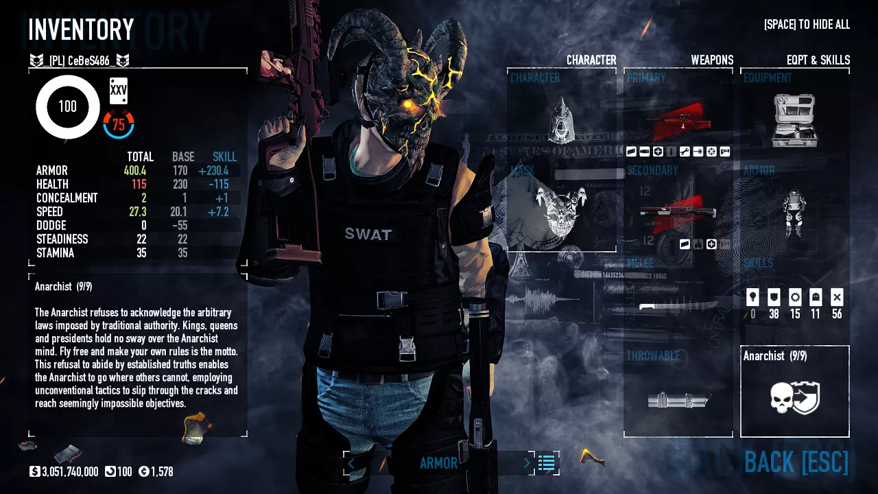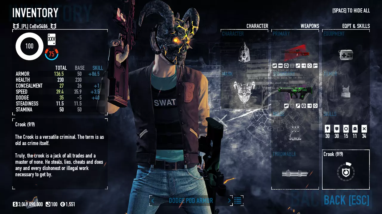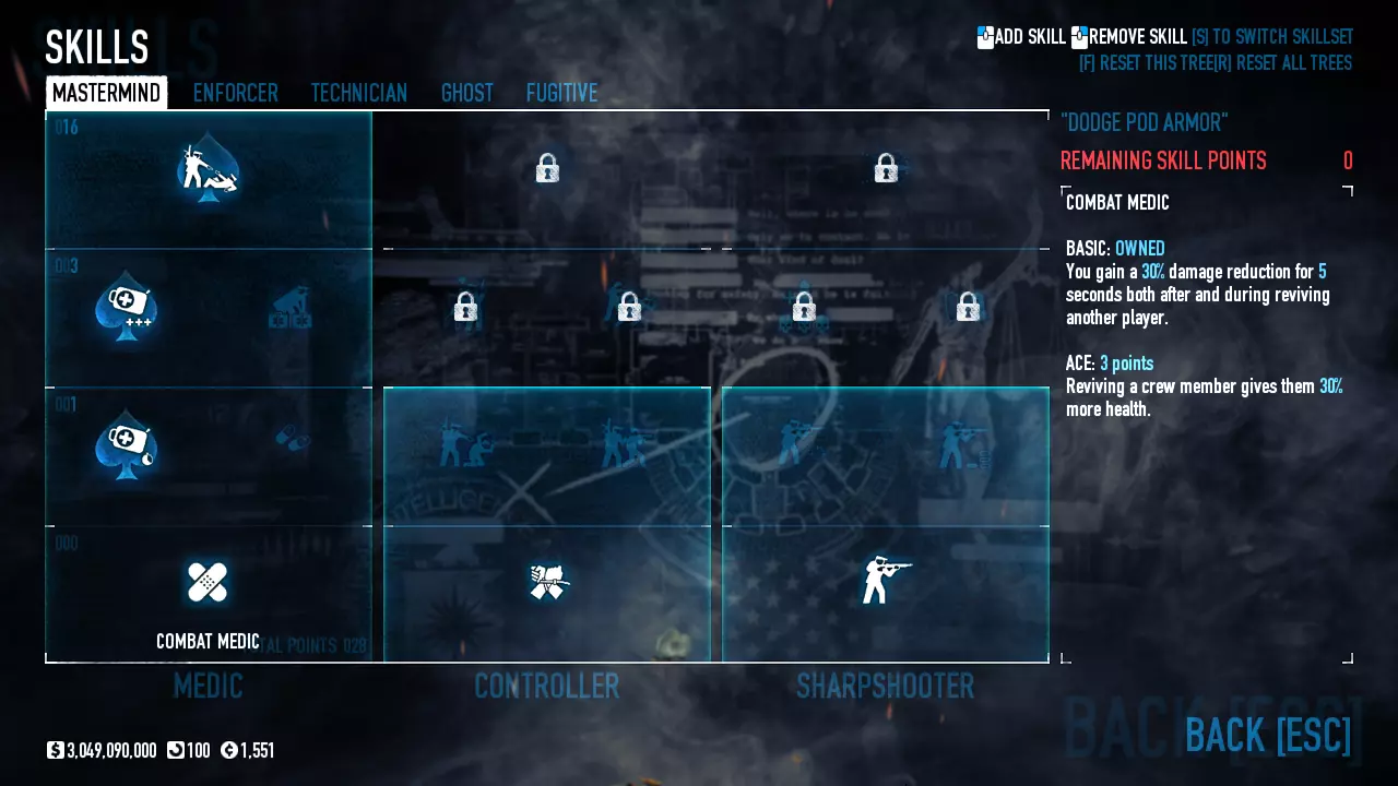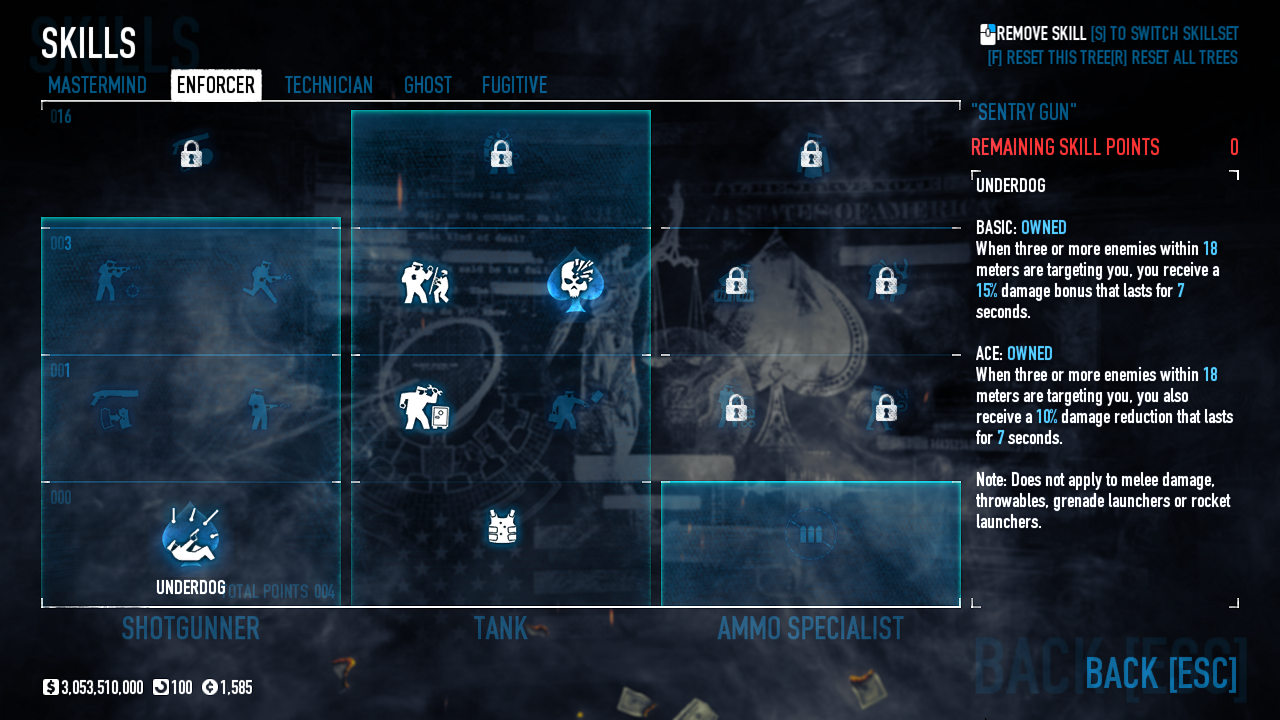 Celem tego poradnika jest omówienie najkorzystniejszych Buildów. Omawiamy sobie ich rodzaje oraz dopasowujemy wybory w zależności od preferencji i stylu gry graczy. Wstęp: Jak długo można czuć się bezkarnym dokonując spektakularnych napadów, zabijając po drodze stróżów prawa i niejednokrotnie nie oszczędzając nawet niewinnych cywilów? Jeśli zagrałeś w tą grę po raz pierwszy i dołączyłeś do przypadkowego pokoju, niekoniecznie na oczekiwanym poziomie trudności, mogłeś boleśnie się przekonać jak smakuje dawka ołowiu robiąc sito z twojego nowego garnituru uszytego na pierwszą komunię ;) Jeśli miałeś szczęście to już po chwili wąchania kwiatków od spodu mogłeś przez kilka sekund cieszyć się możliwością używania klawiatury w grze desperacko próbując znaleźć jakieś bezpieczne schronienie zanim brutalnie trafiłeś do więzienia. Jeśli nie miałeś - to w tym momencie na środku ekranu pojawił Ci się napis który warto zapamiętać, bo będzie on nieodłączną częścią twojej dalszej kariery jako początkującego złodzieja: "You are kicked from the server!". Kiedy robiłeś dalsze postępy w swojej złodziejskiej karierze stawiając pierwsze kroki w grze i obserwując innych graczy na wyższych poziomach trudności zacząłeś się zastanawiać: Jak to możliwe że oni tak dobrze grają? Czy ja jestem taki słaby, czy oni oszukują? Odpowiedź nie jest taka oczywista. Co prawda w tej grze liczą się umiejętności, ale niebagatelne znaczenie ma odpowiedni Build - czyli wybór ściśle określonych ulepszeń postaci. Taki Build może zdziałać cuda nawet jeśli twoje umiejętności w tej grze nie są na najwyższym poziomie. Dlaczego to jest takie ważne? Zanim ten temat rozwiniemy kilka słów na temat tej funkcjonalności. PayDay 2 - czyli nasz Dzień Wypłaty! Pod względem technicznym studio Overkill wydało grę która z gruntu jest tworzona w systemie dość rzadko spotykanym w podobnych tego typu produkcjach. W większości gier drzewka umiejętności dzielą się zwykle na kilka grup i polegają na sukcesywnym odblokowywaniu kolejnych rodzajów umiejętności w miarę zdobywanych postępów w grze, a celem jest odblokowanie ich wszystkich. W grze Payday 2 system taki nie został zaimplementowany. W tej produkcji maksymalna ilość punktów jaką możemy zdobyć bez względu na czas spędzony w grze i osiągane wyniki wynosi 120 tak zwanych Skill Pointów (osiągając poziom 100). Jest to dużo mniej niż ilość wymagana do odblokowania wszystkich dostępnych umiejętności (warto tutaj nadmienić że każdą z umiejętności możemy odblokować dwa razy co oczywiście wpływa nam na uzyskanie dodatkowych możliwości opisanych przy każdej z nich). Dlaczego zatem w tej grze wprowadzono system w którym żaden z graczy nie może z biegiem postępu w grze odblokować wszystkich ulepszeń? Kluczowym powodem którym kierowało się studio Overkill była chęć stworzenia gry w której każdy z graczy będzie posiadał całkowicie indywidualne odblokowane umiejętności, a co za tym idzie będzie korzystał z różnych specjalizacji. Ale w przeciwieństwie do innych gier w których takie wybory, jeśli w ogóle istnieją, zwykle ograniczają się do czterech głównych grup z narzuconymi z góry umiejętnościami w każdej z nich, w grze Payday 2 pomimo wprowadzenia takich pięciu różnych grup, nasze wybory umiejętności mogą być dowolnie łączone z każdą pojedynczą umiejętnością z jakiejkolwiek grupy. Daje to dziesiątki, setki a może nawet i tysiące różnych kombinacji które składają się na tak zwany Build - czyli końcowy zestaw odblokowanych umiejętności wykorzystujących maksymalną ilość dostępnych dla naszego postępu w grze punktów umiejętności. Jakby tego było mało do naszego Builda możemy wybrać zestaw tak zwanych Perków. Perki znajdują się w oddzielnej grupie w dziale dostosowywania naszej postaci. Składają się z kilkudziesięciu zestawów gotowych dodatkowych umiejętności które wprowadzają dodatkowe możliwości dla wybranego przez nas Builda i z których możemy do każdego naszego Builda wybrać jeden. Jeśli chcemy osiągać w tej grze postępy nasze wybory nie mogą być losowe. Niektóre z umiejętności mogą ze sobą kolidować co może wpływać nie tylko na stratę bardzo cennych Skill Pointów czyniąc nasze wybory bezużytecznymi, ale niejednokrotnie może także powodować pogorszenie naszych możliwości w grze co ma kluczowe znaczenie dla skutecznej rozgrywki. To samo może się zdarzyć jeśli do idealnie dobranych Skill Pointów dobierzemy niedopasowane Perki. Dla pocieszenia w tej grze nie musimy się przejmować złymi wyborami jeśli patrzymy z punktu widzenia dostępnych punktów umiejętności. Każdy wybór możemy cofnąć odzyskując nasze punkty, co daje nam nieograniczone możliwości zabawy z konfigurowaniem według własnego pomysłu odpowiedniego Builda. Ponadto z biegiem postępów w grze możemy odblokować dodatkowe sloty które dają nam możliwość tworzenia kilku jednoczesnych Buildów możliwych do wyboru przed rozgrywką przy pomocy jednego kliknięcia myszy z których każdy posiada identyczną ilość Skill Pointów dostępną dla naszej postaci do której możemy przypisać konkretny ekwipunek (co jest przydatne do tworzenia osobnego Builda do gry na cicho i na głośno z różnymi wariantami). Jeśli jednak nie chcecie eksperymentować, w tym poradniku chciałbym przedstawić najważniejsze grupy Buildów które posiadają odpowiednio dobrane umiejętności. W każdym z przedstawionych Buildów wyjaśniam cel i działanie każdego z nich, a następnie pokazuje jakie umiejętności wraz z odpowiednim ekwipunkiem są zalecane przy jego tworzeniu. Tam gdzie to możliwe udostępniam także kilka wariantów. Proszę jednak pamiętać że niektóre z Buildów lub niektóre z wymienionych przedmiotów z ekwipunku mogą wymagać wydania gry 